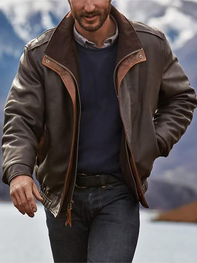 Men's Outdoor Vintage Lapel Pocket Leather Jacket