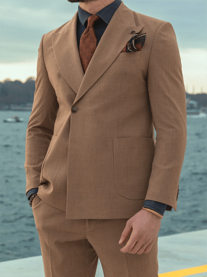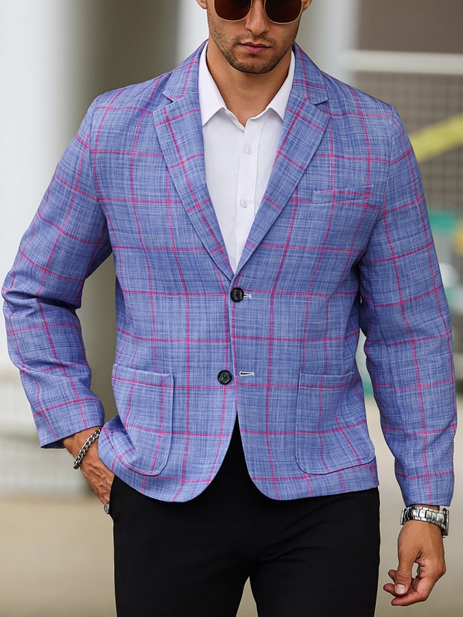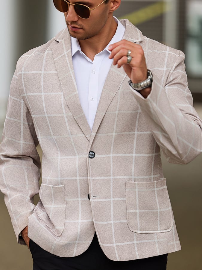 Men's Fashionable Plaid Design Single-Breasted Pocket Design Casual Suit