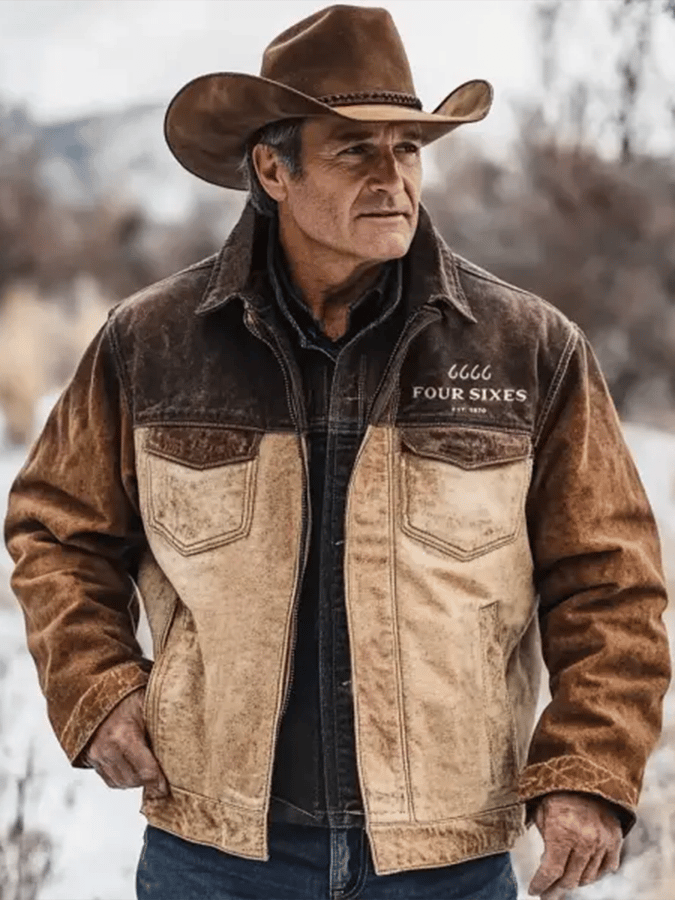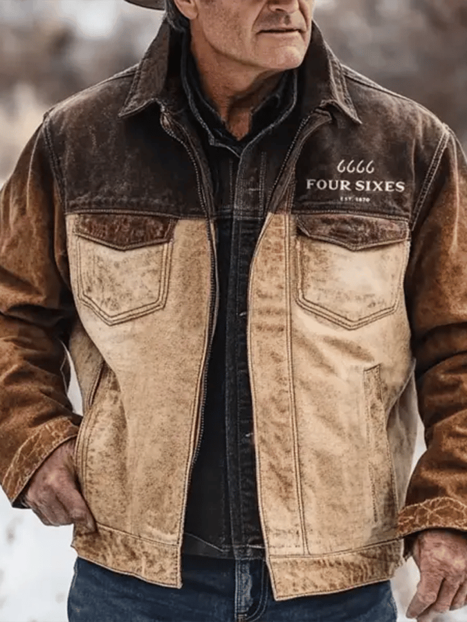 Men's Vintage Western Cowboy 6666 Color Block Lapel Outdoor Jacket