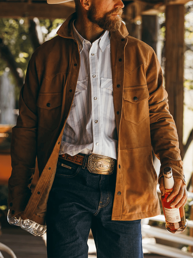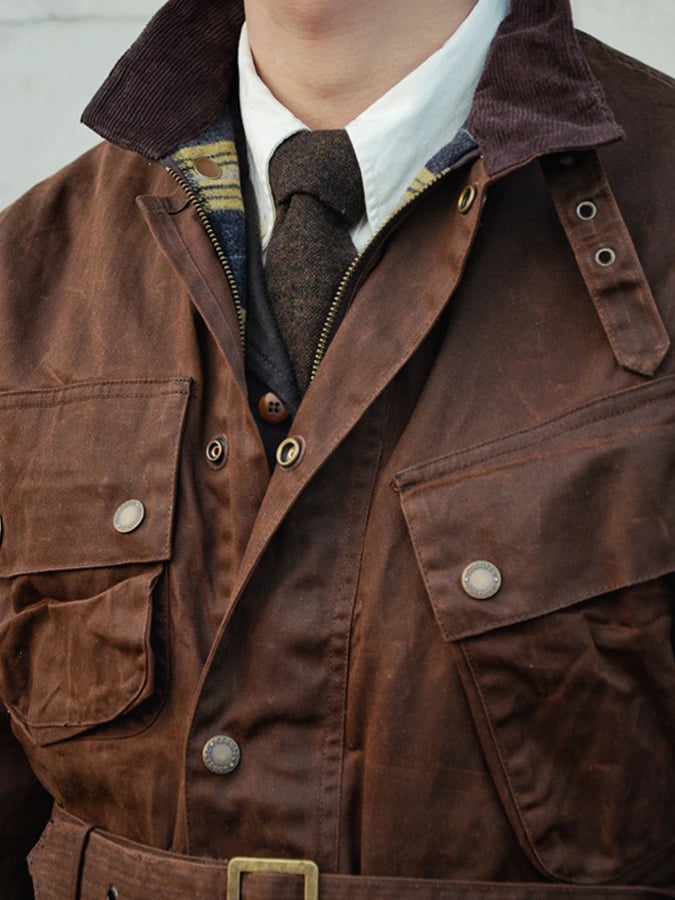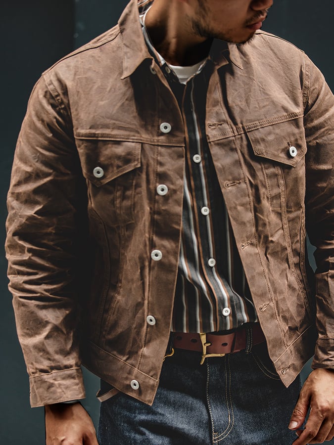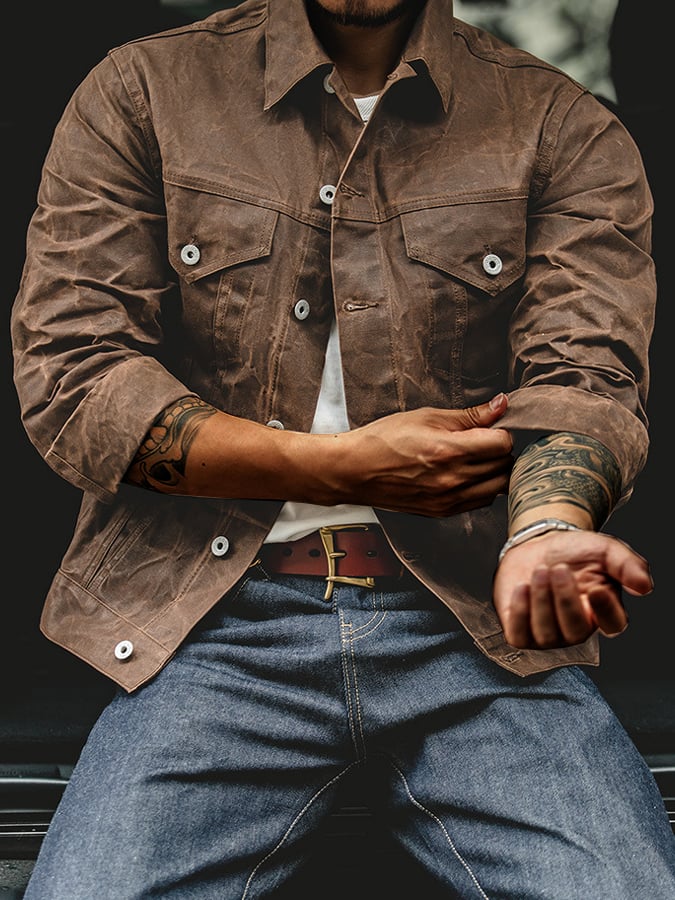 Men's Vintage Western Style Mid-Length Waxed Jacket