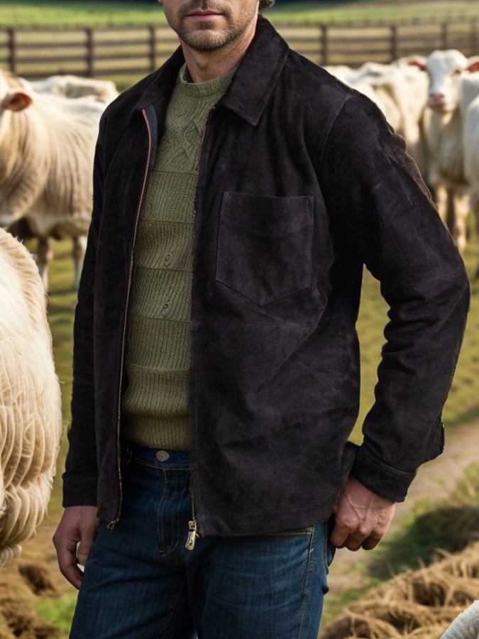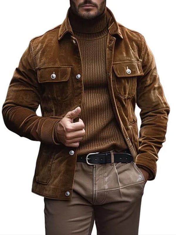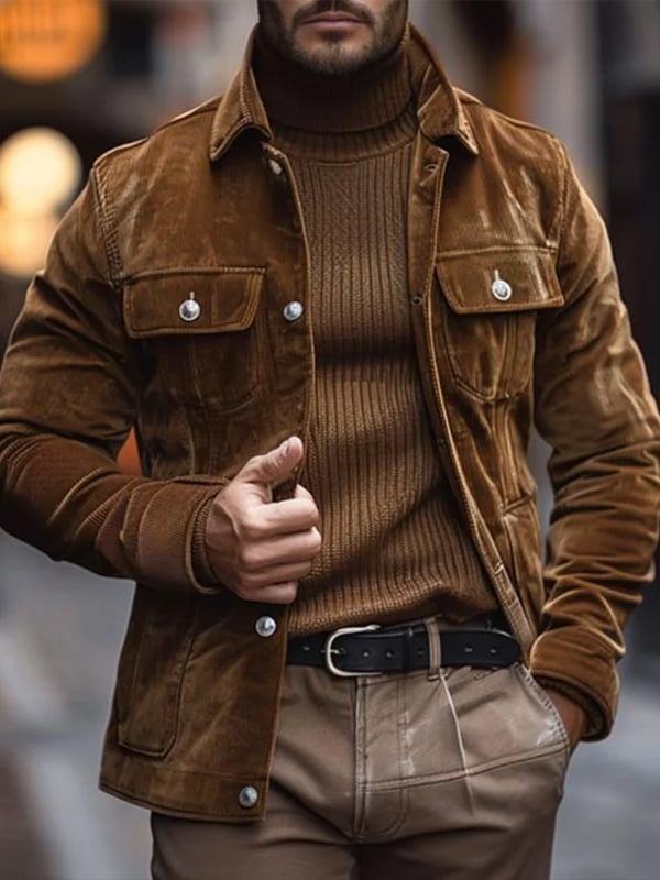 Men's Vintage Suede Multi-Pocket Lapel Outdoor Jacket