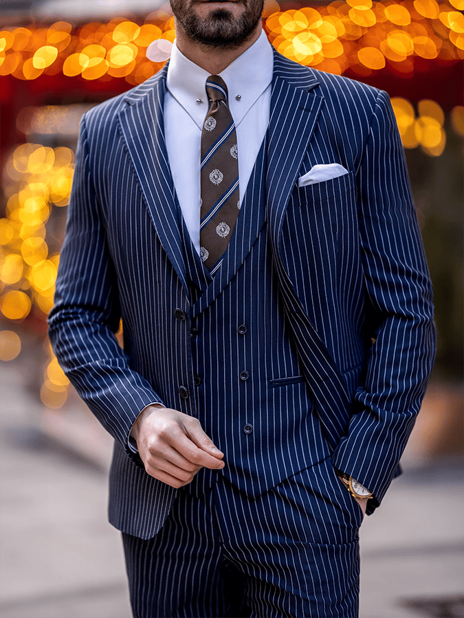 Men's Stylish Striped Design Double Breasted Pocket Design Casual Suit