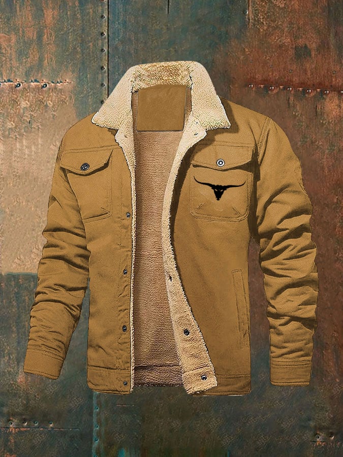 Men's Vintage Western Plus Velvet Flannel Lapel Jacket