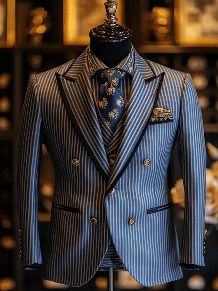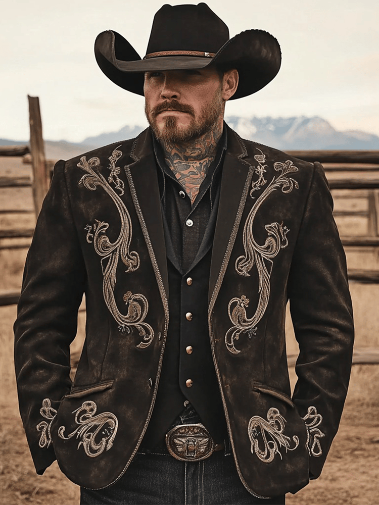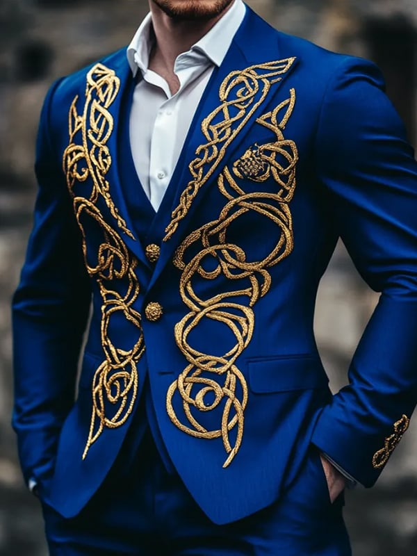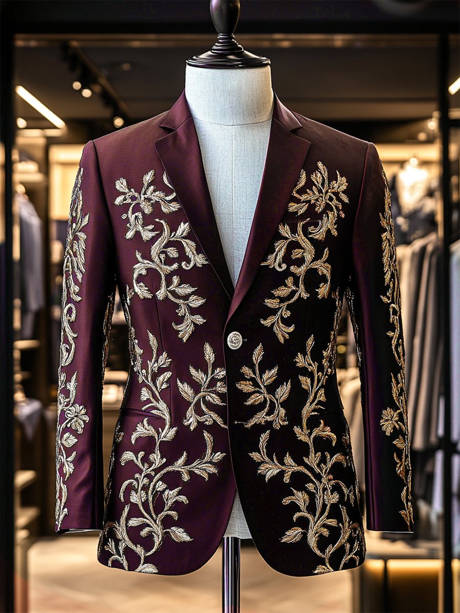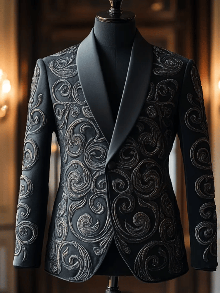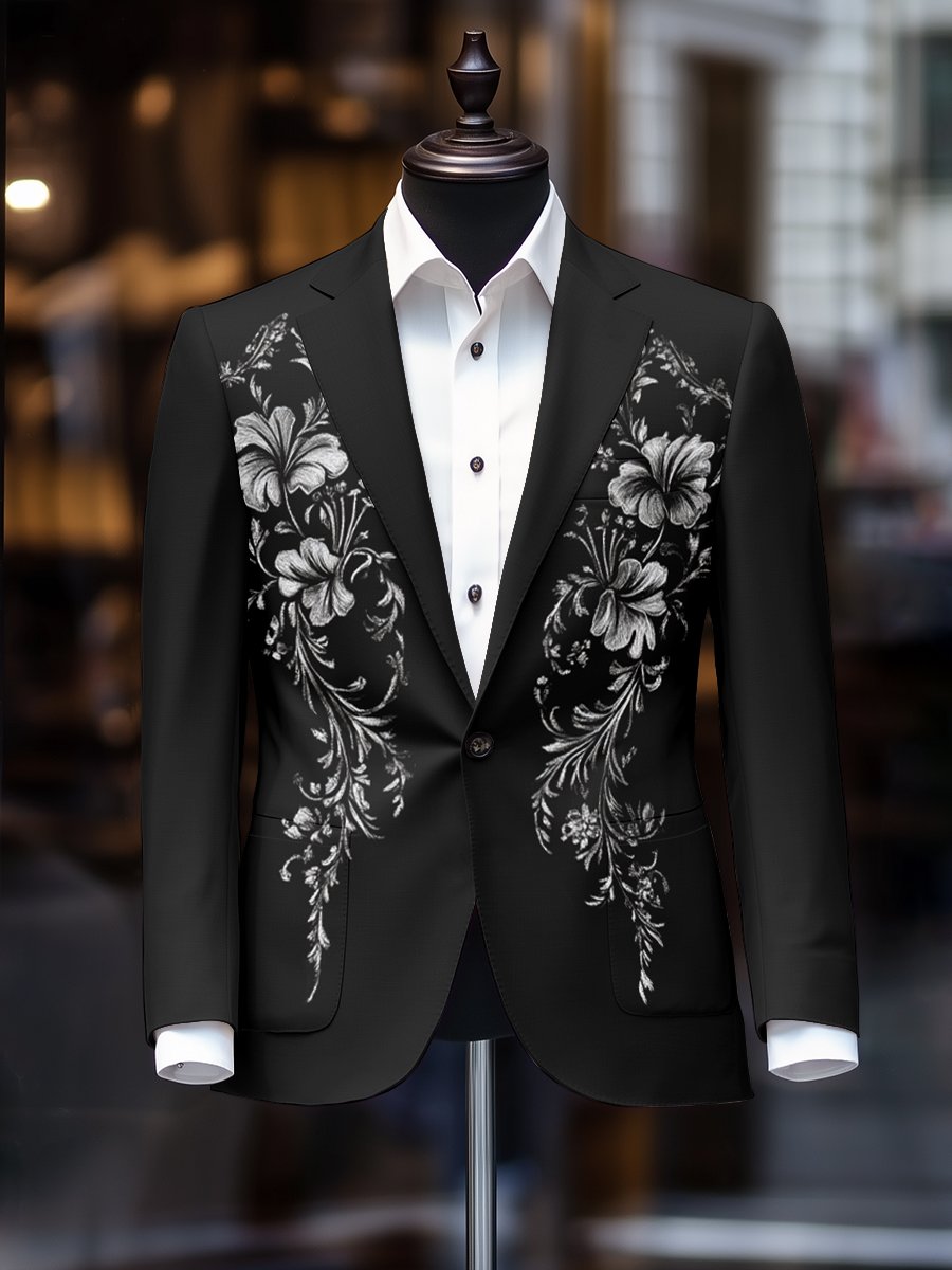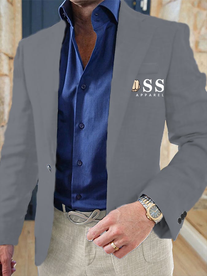 Men's Retro Single Breasted Letter Design Gentleman Business Suit Jacket