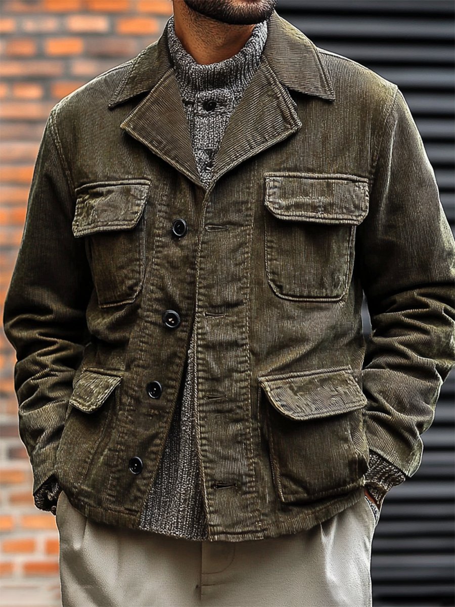 Men's Casual Corduroy Multi-Pocket Jacket Coat