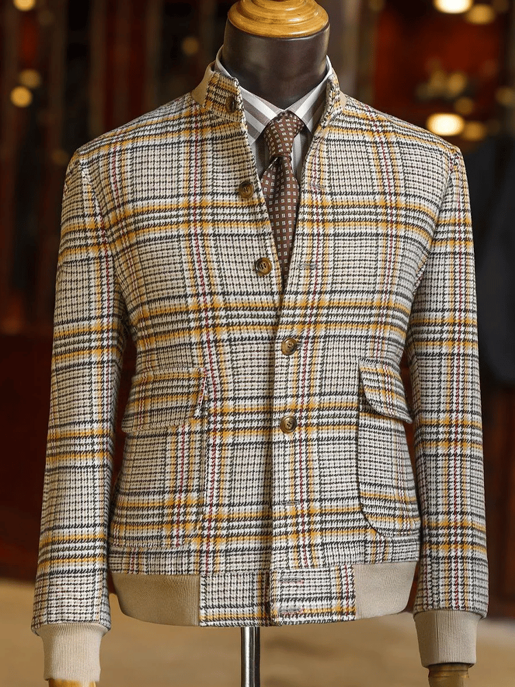 Men's Vintage Single-Breasted Plaid Gentleman's Business Suit Jacket