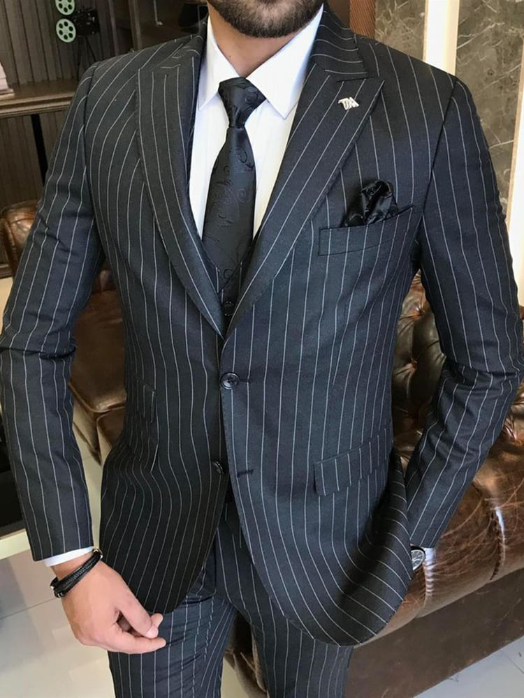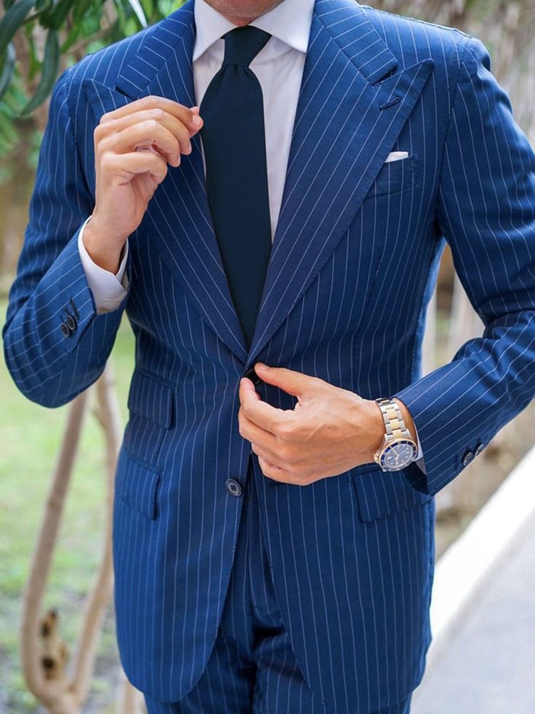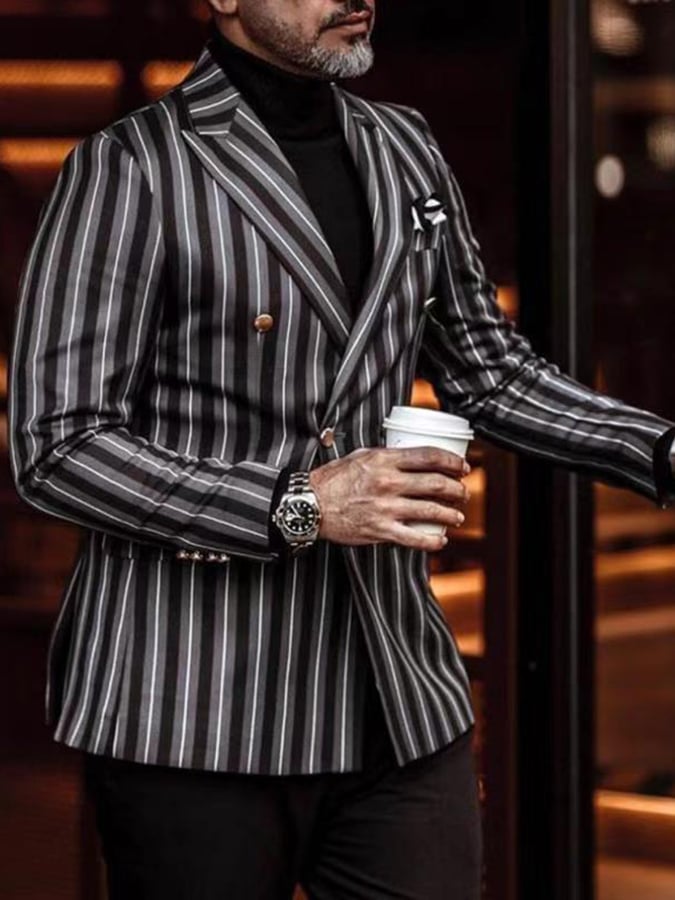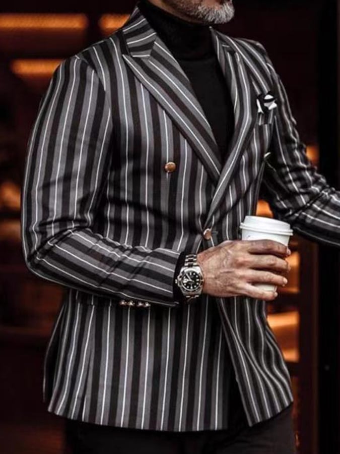 Men's Stylish Striped Double Breasted Two Button Blazer