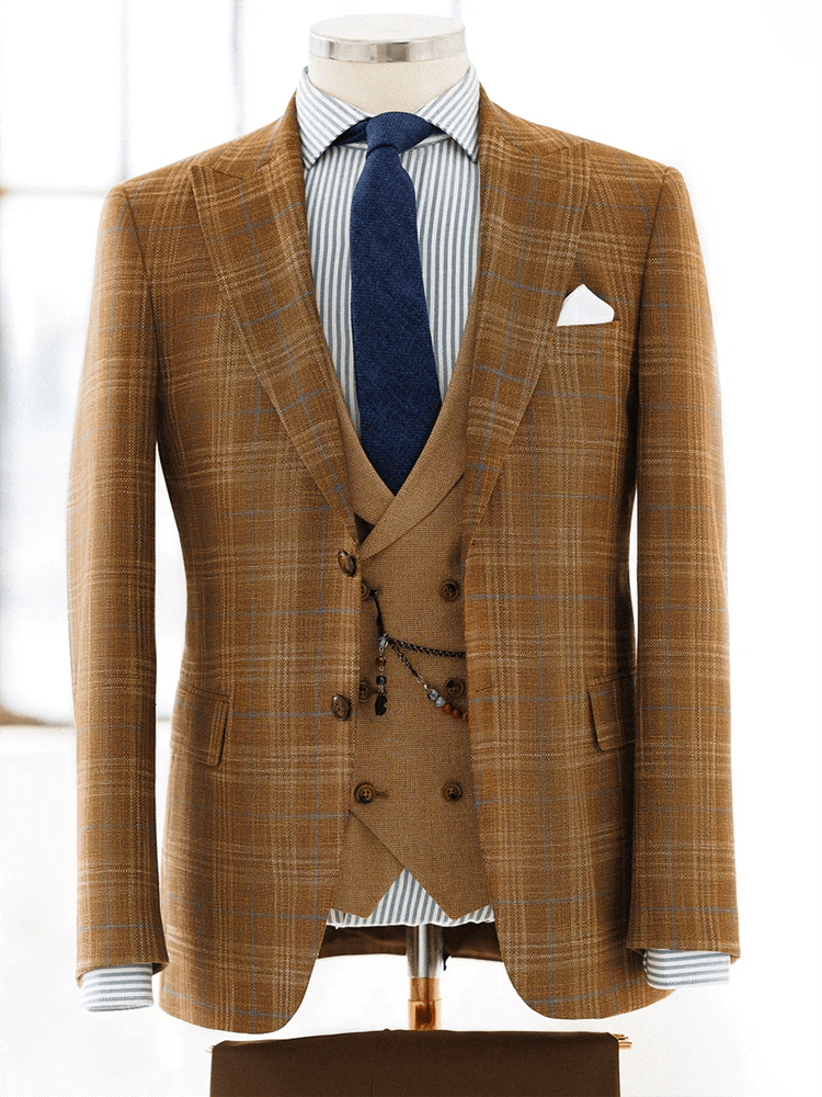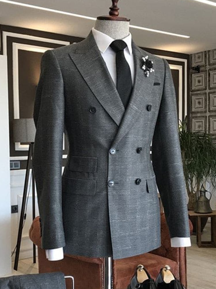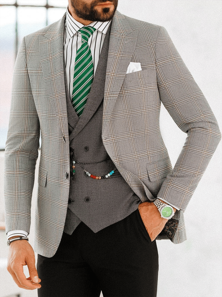 Men's Vintage Double-Breasted Plaid Gentleman's Business Suit Jacket