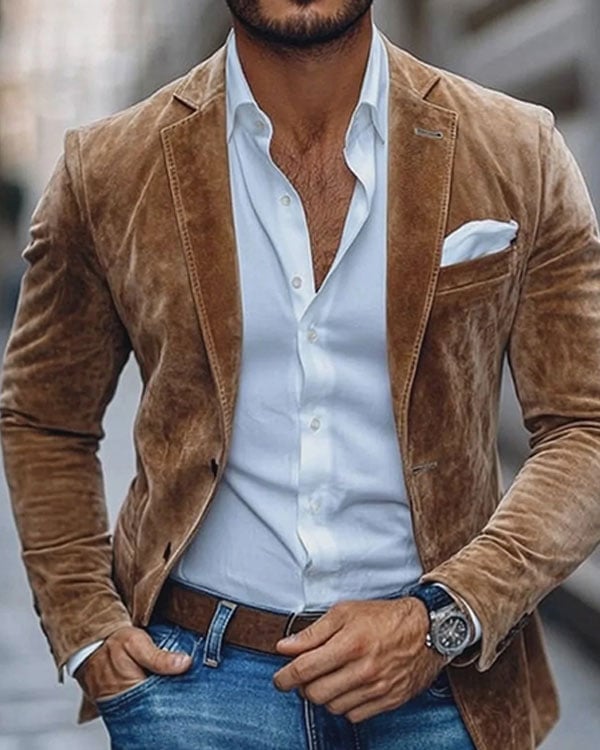 Men's Vintage Single Breasted Pocket Gentleman's Business Suit Jacket