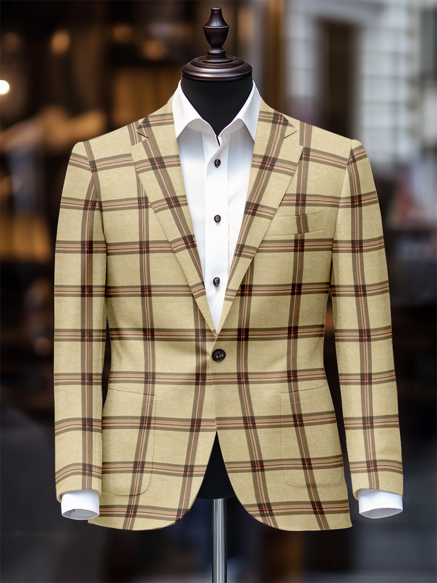 Men's Work Office Notched Collar Plaid Regular Fit Blazer