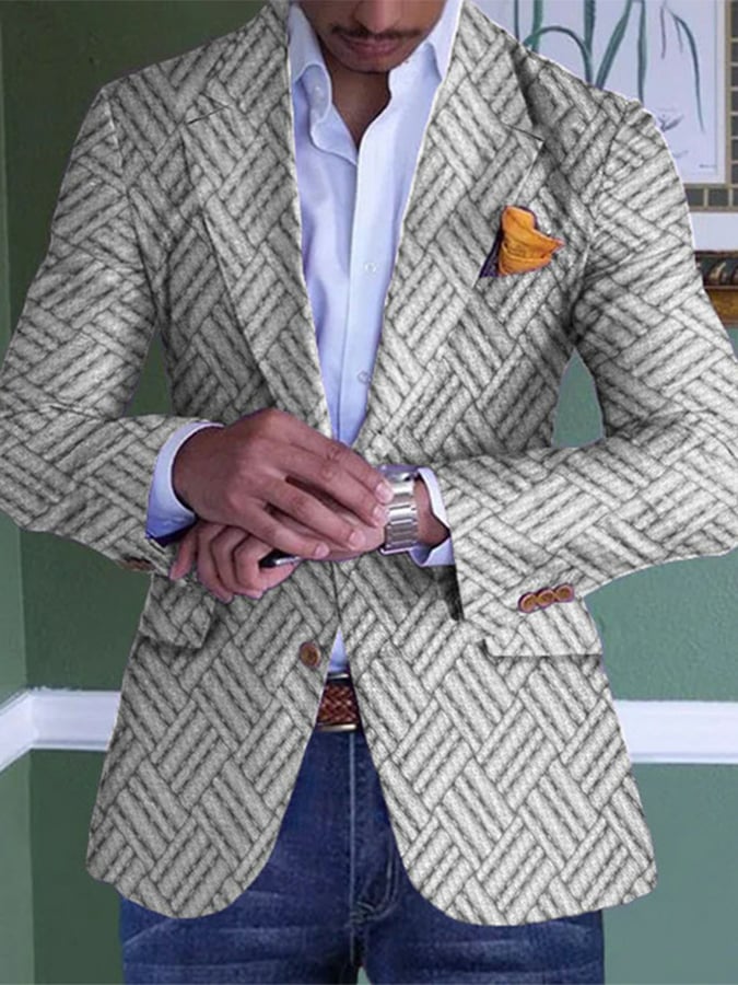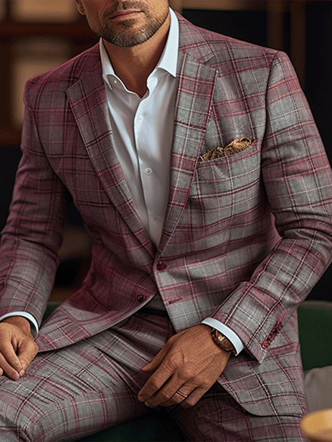 Men's Vintage Single-Breasted Plaid Gentleman's Business Suit Jacket