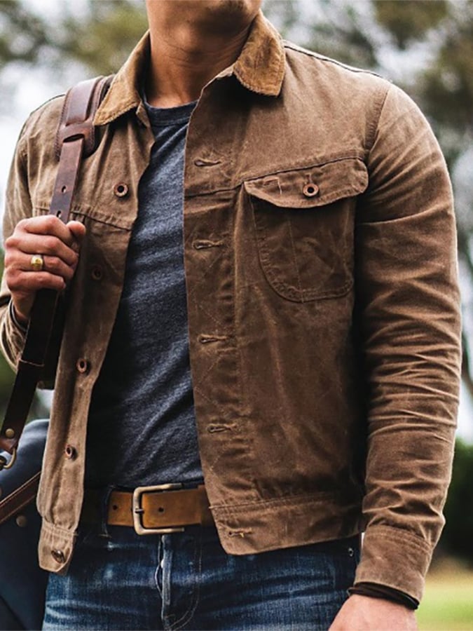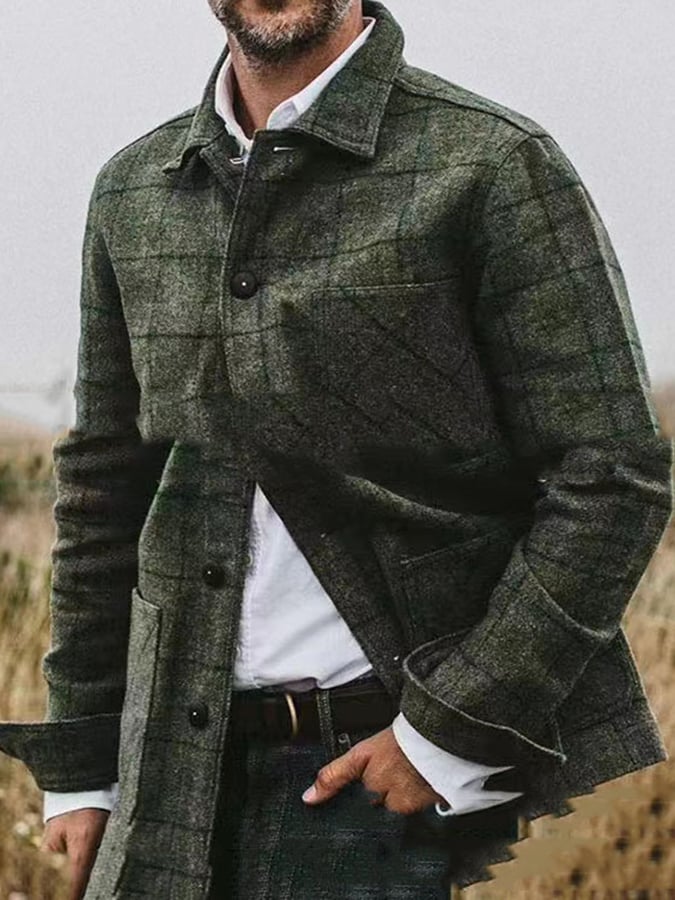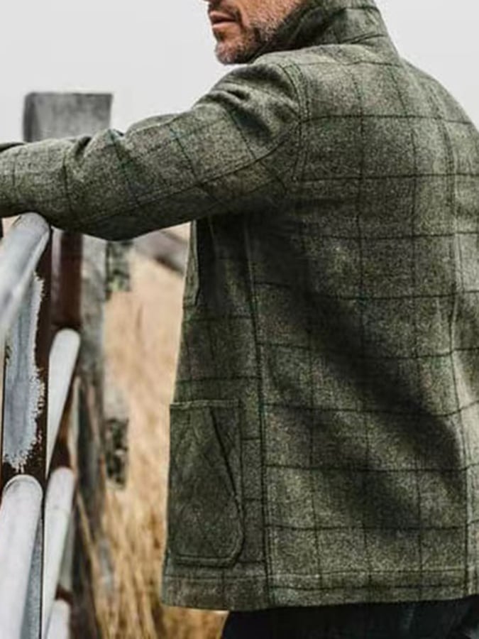 Men's Retro Plaid Outdoor Pocket Lapel Long Sleeve Jacket