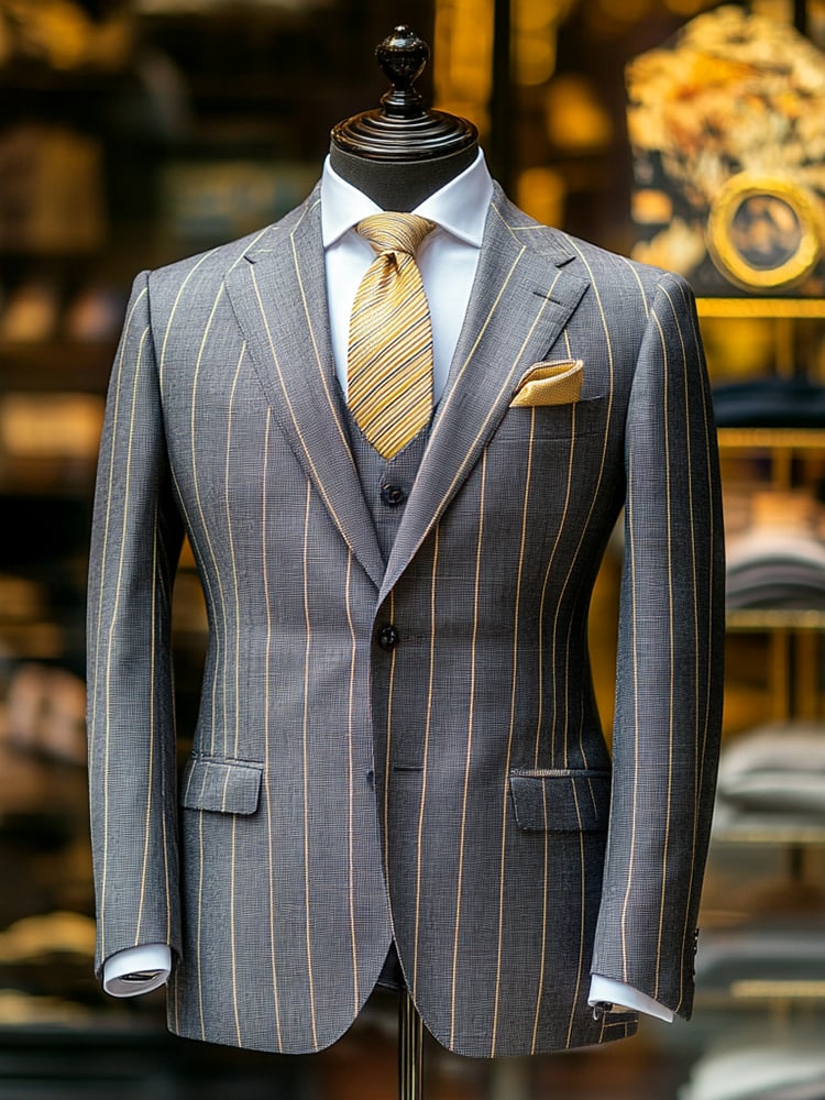 Men'S Casual Classic Business Striped Long-Sleeved Suit