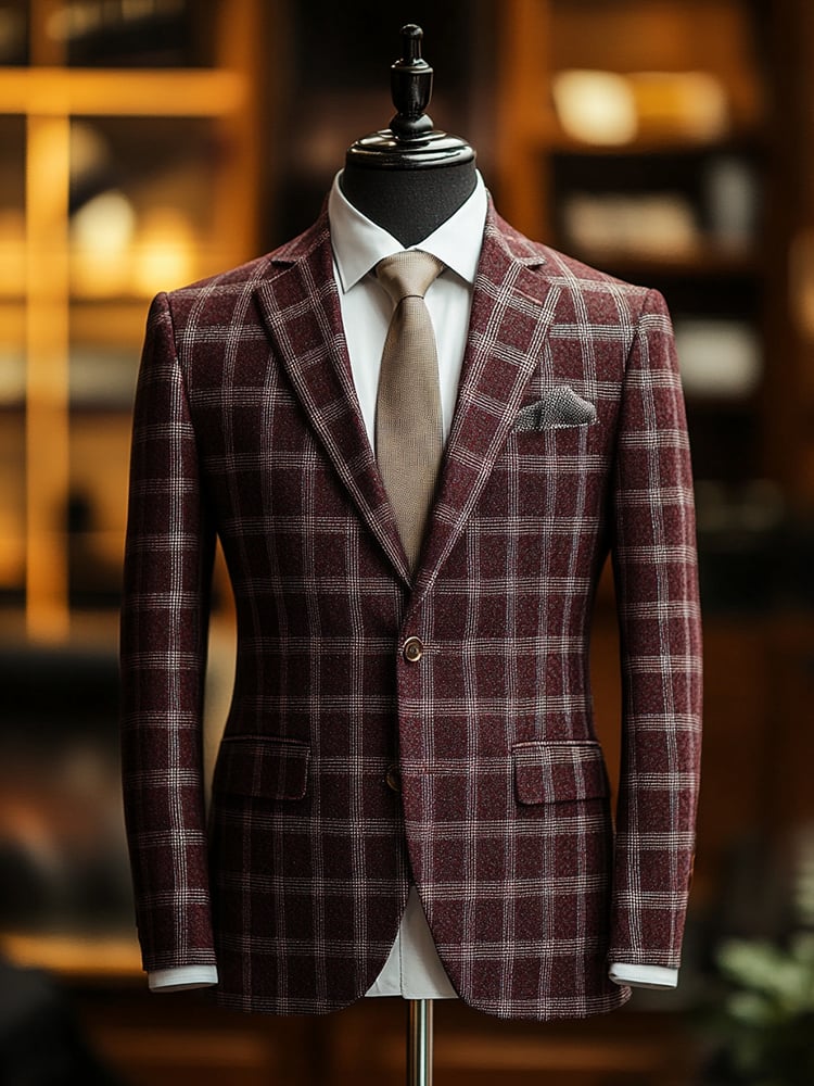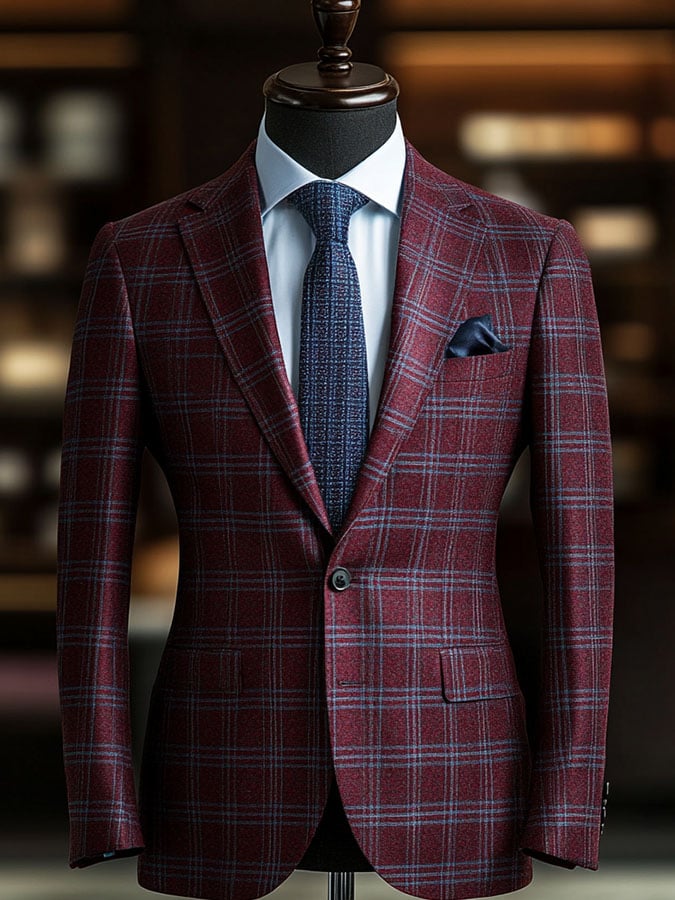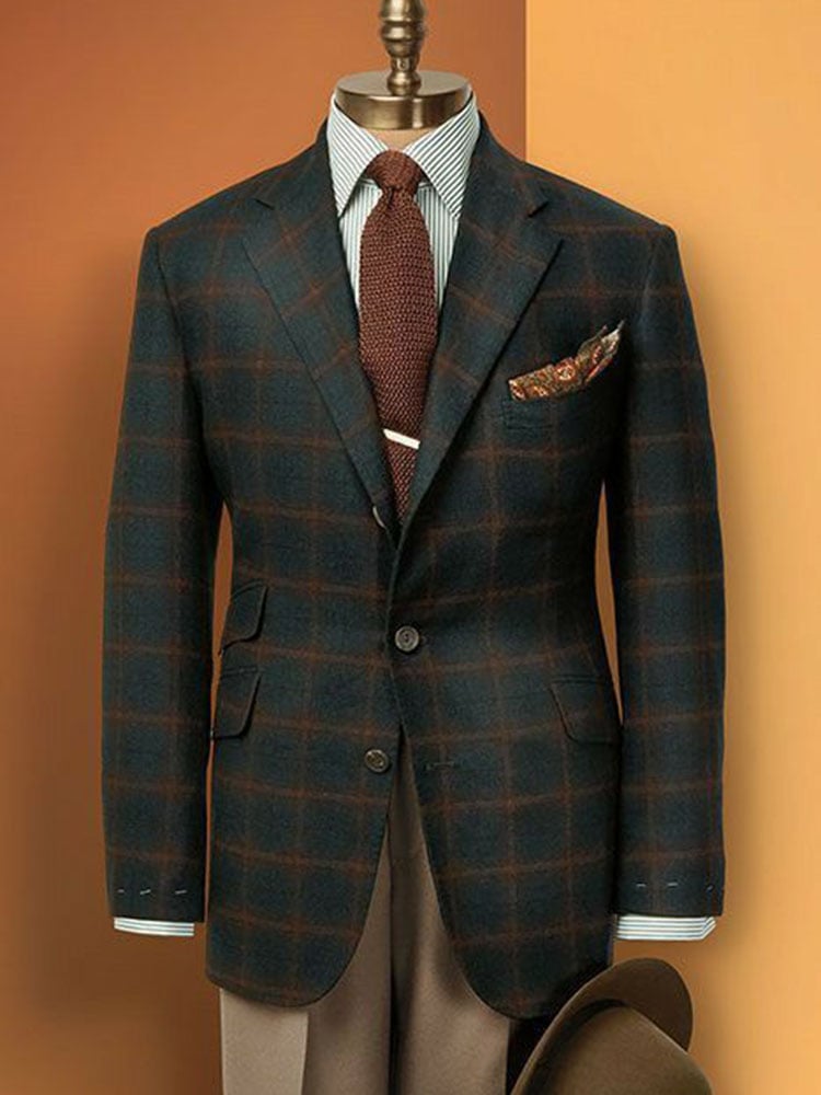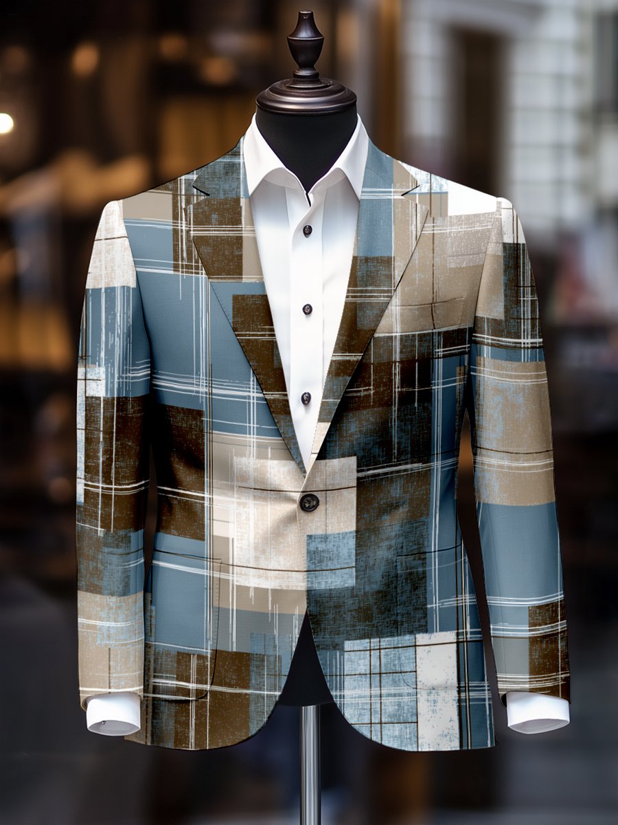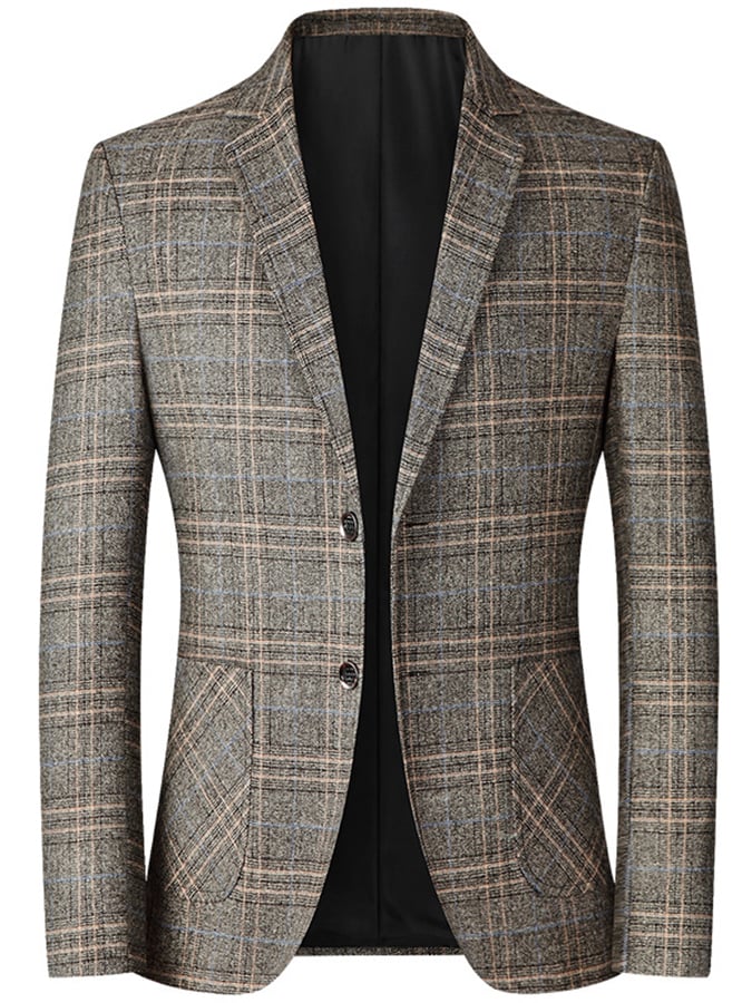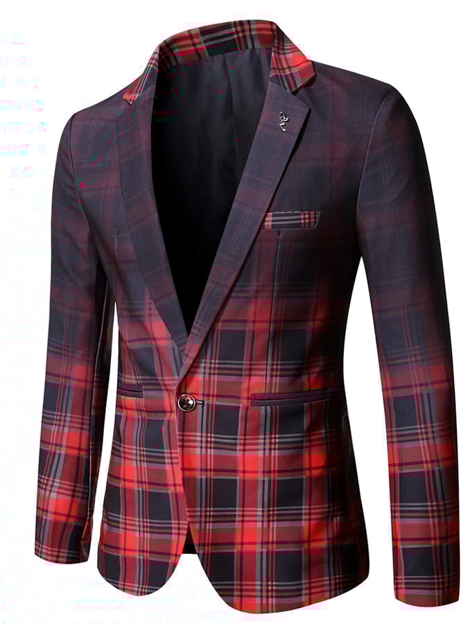 Checkered Contrasting Color Gentleman Business Casual Slim Fitting Suit Jacket
