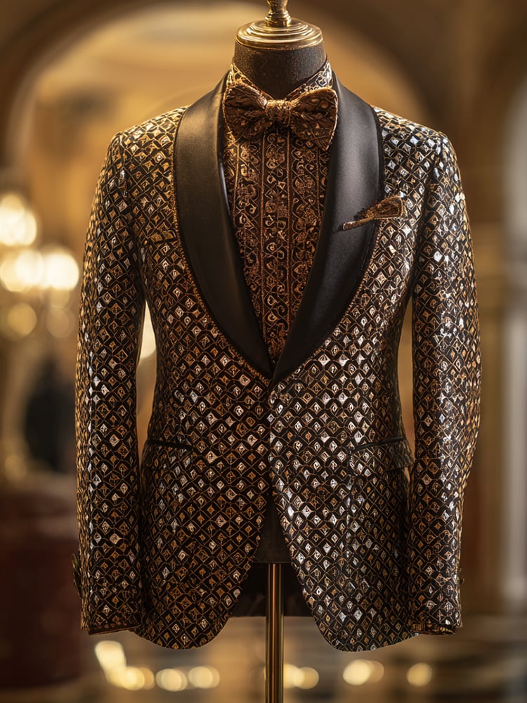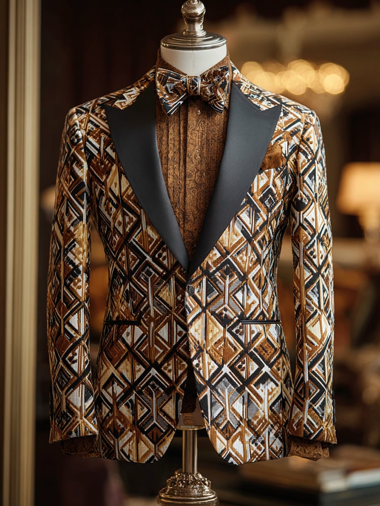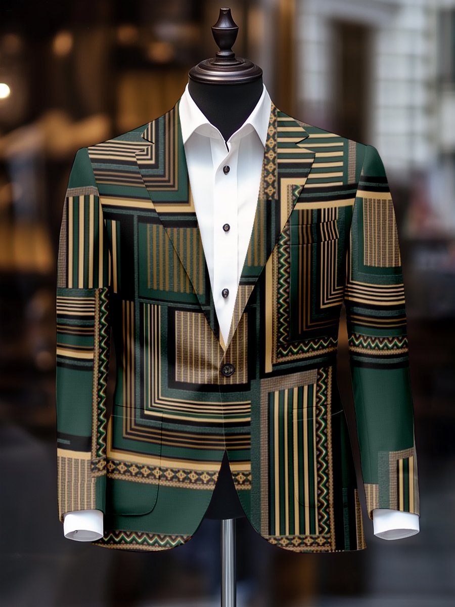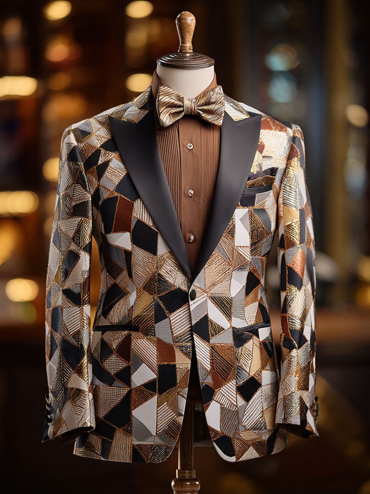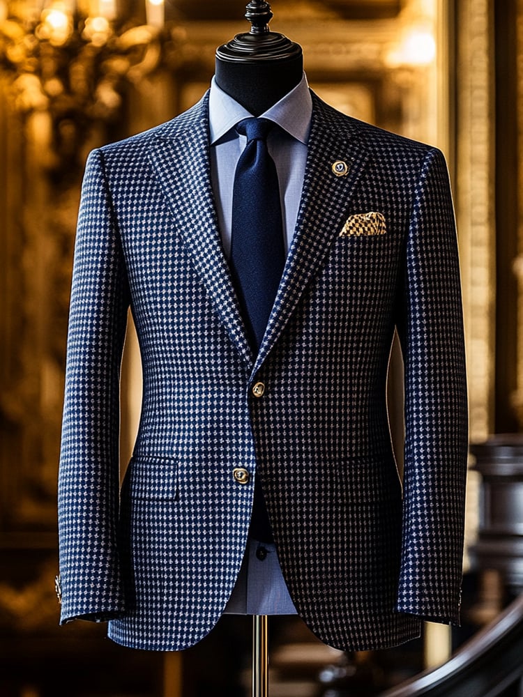 Checkered Contrasting Color Gentleman Business Casual Slim Fitting Suit Jacket