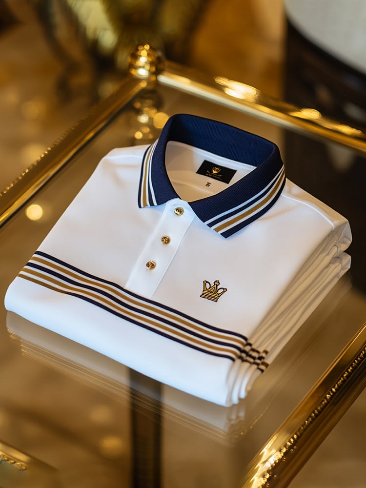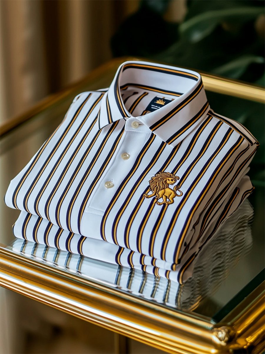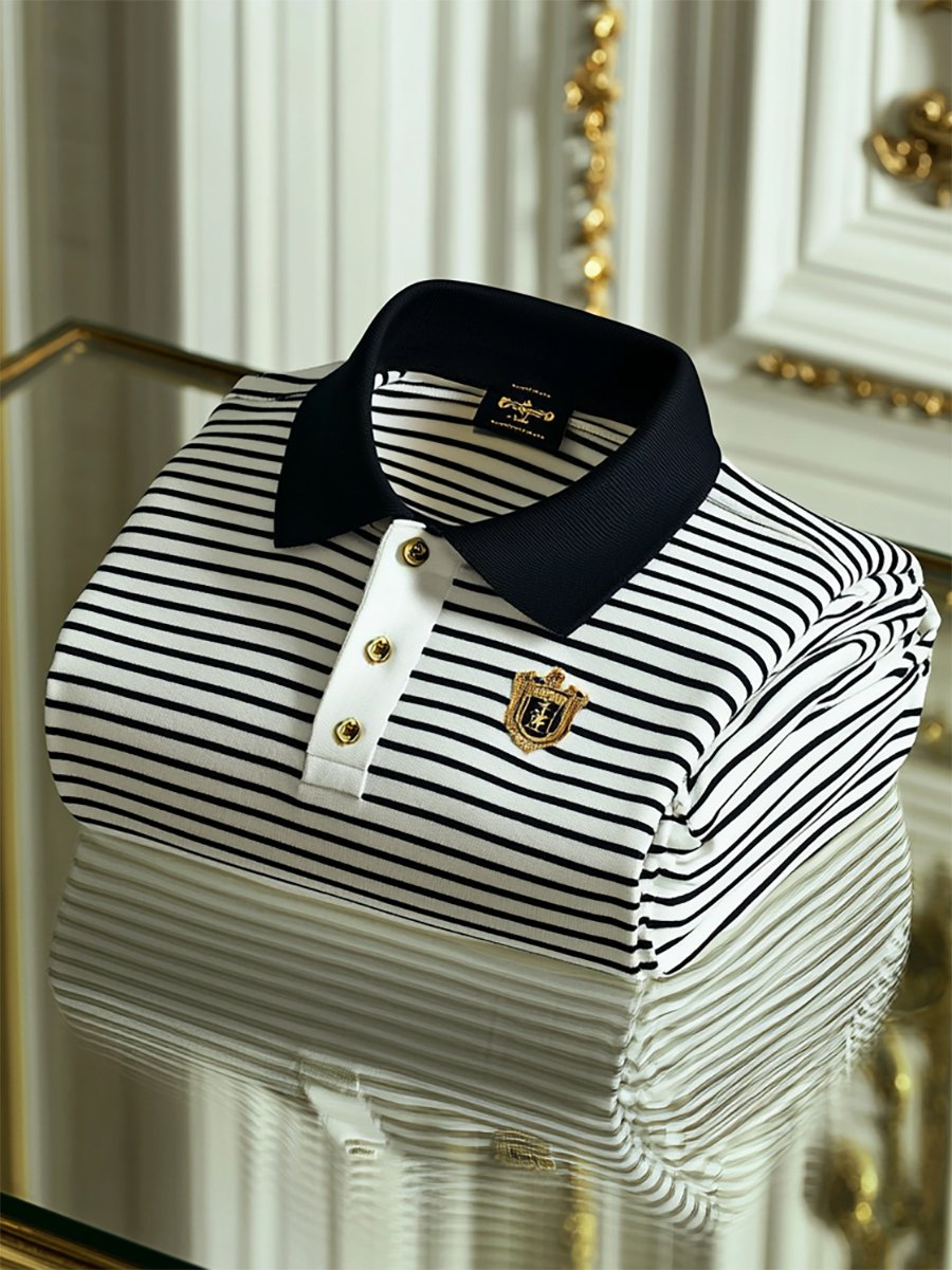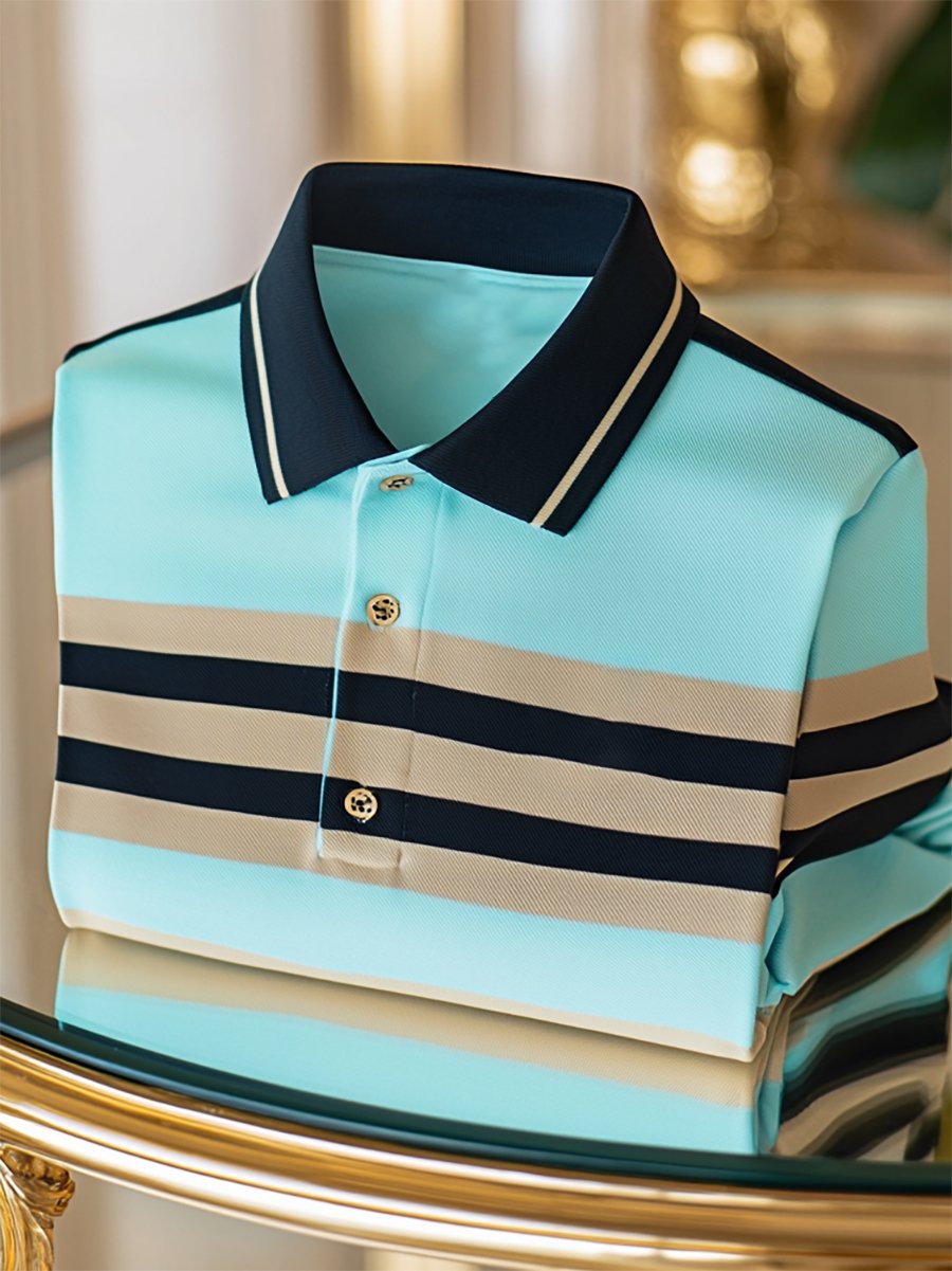 Men's Business Casual Striped Button Short Sleeve Polo Shirt