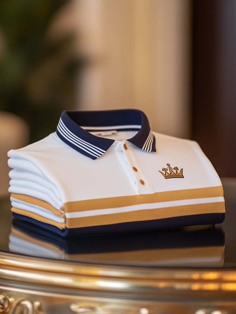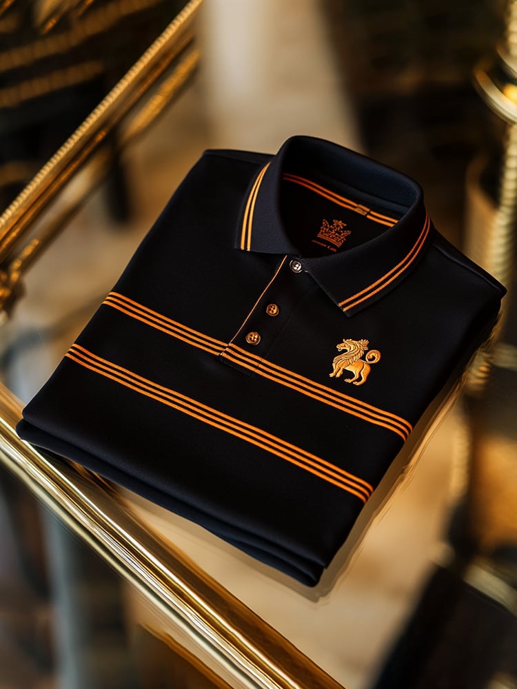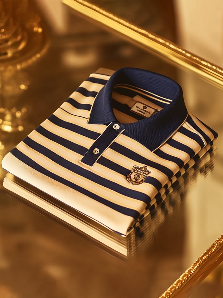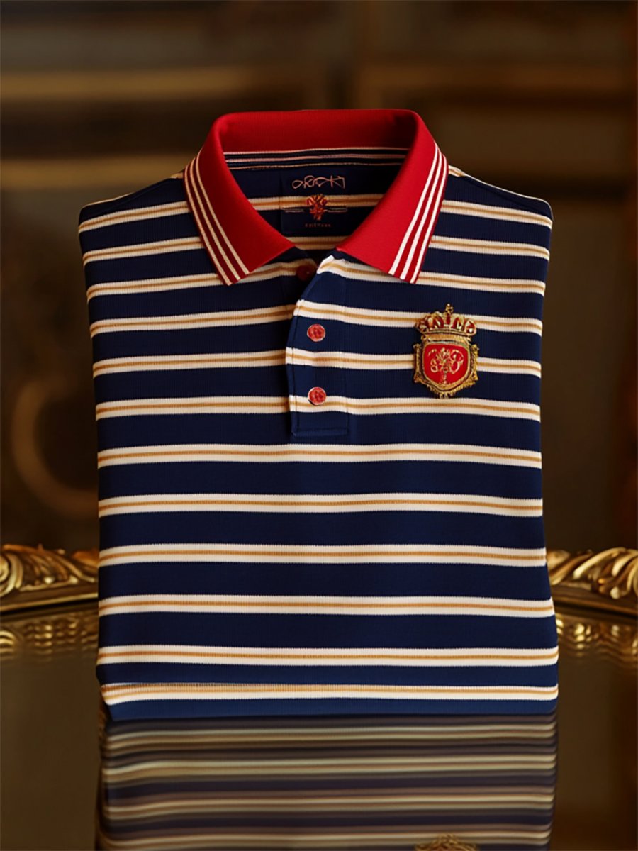 Men's Business Casual Striped Button Short Sleeve Polo Shirt