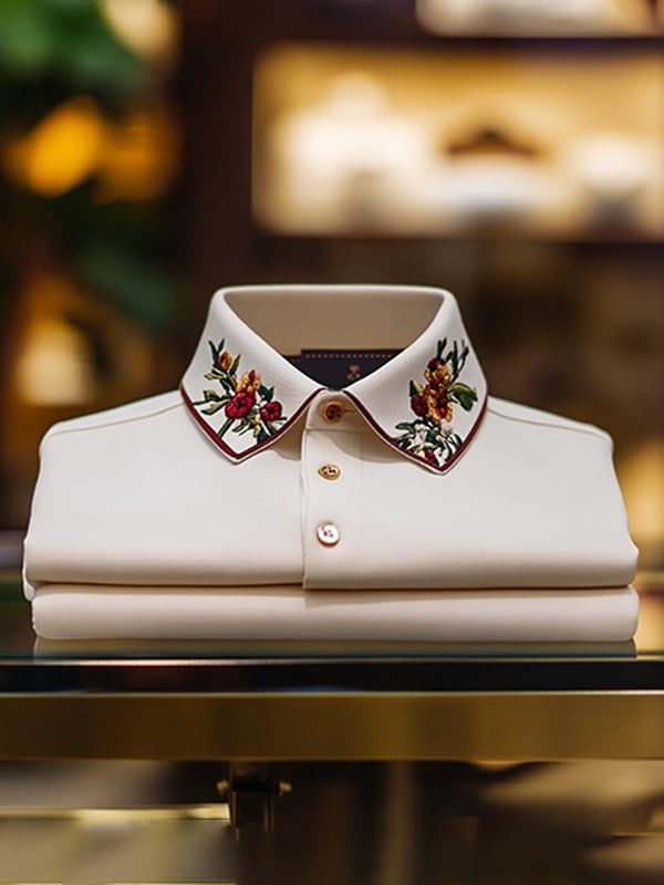 Men's Business Casual Collar Floral Button Polo Shirt