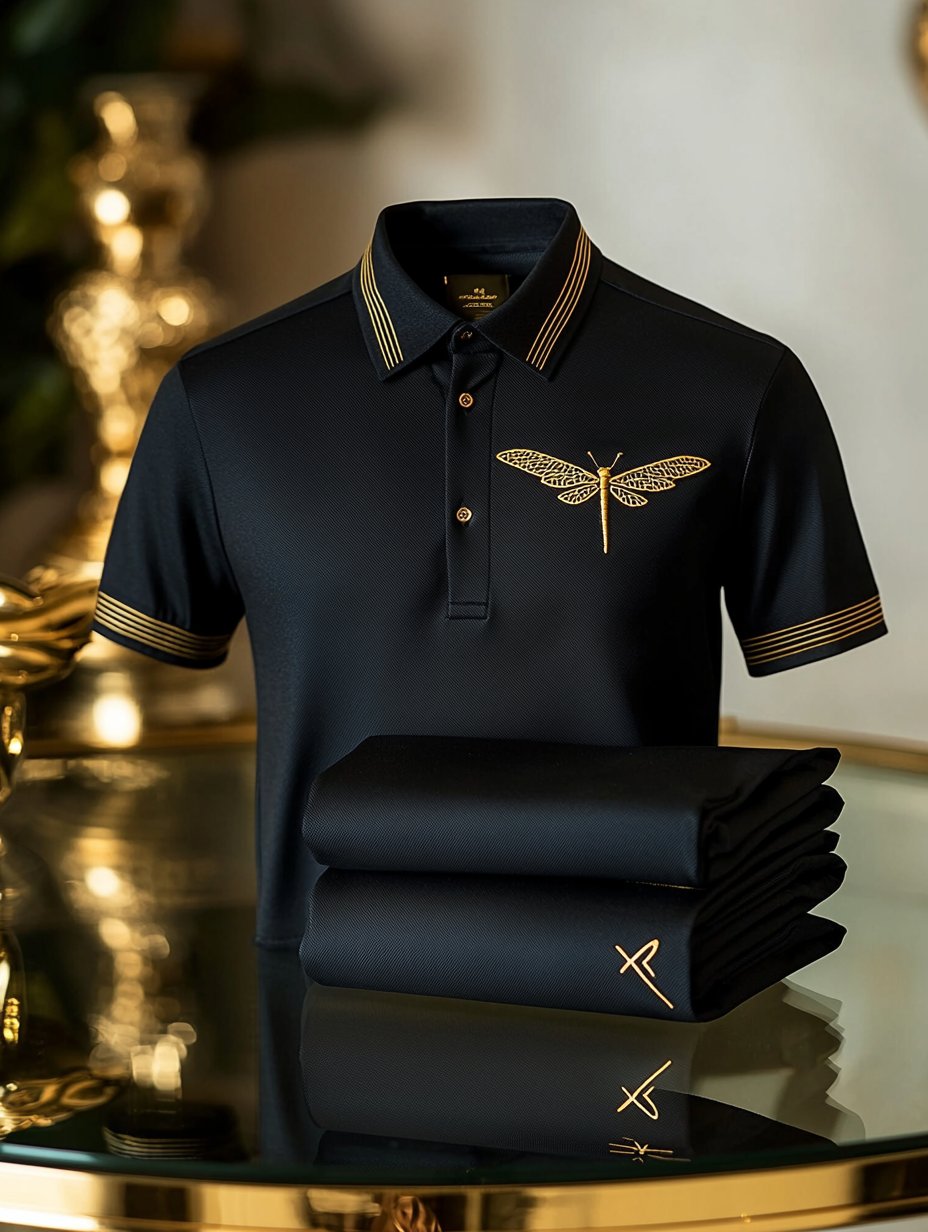 Men's Business Crown Print Sweat-Wicking Short Sleeve Polo Shirt