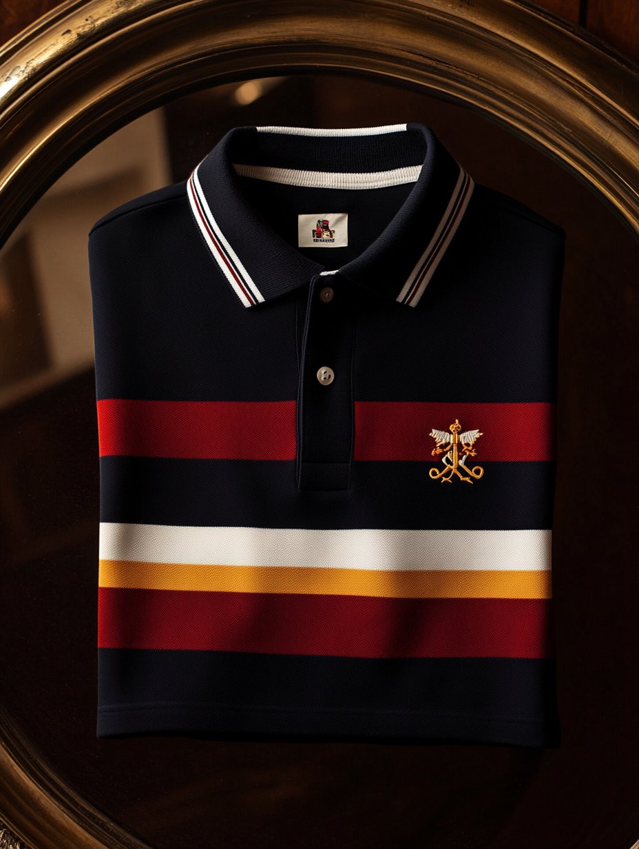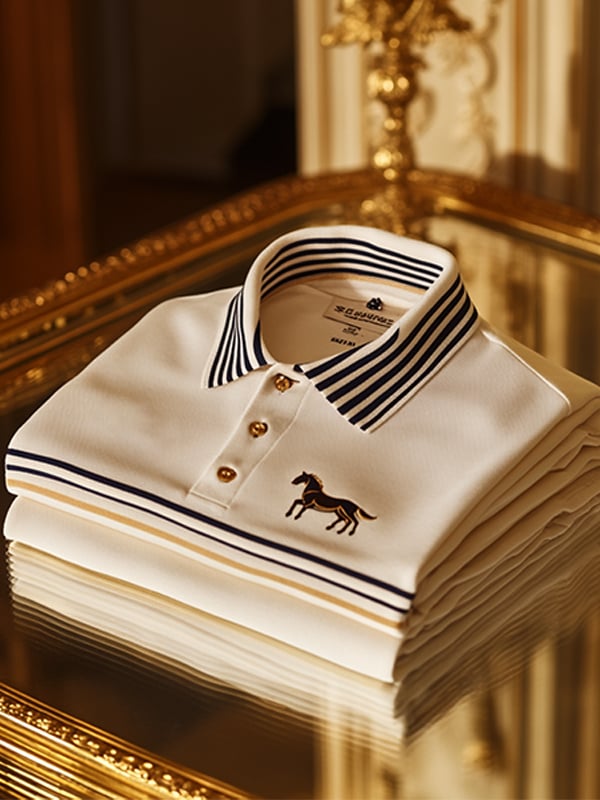 Men's Business Red Striped Horse Logo Print Short Sleeve Polo Shirt