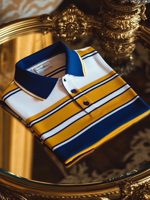 Men's Business Casual Striped Button Short Sleeve Polo Shirt