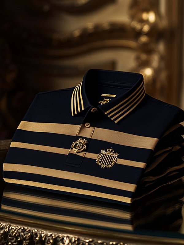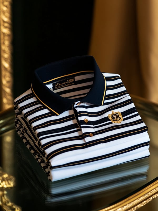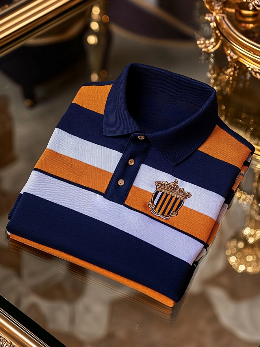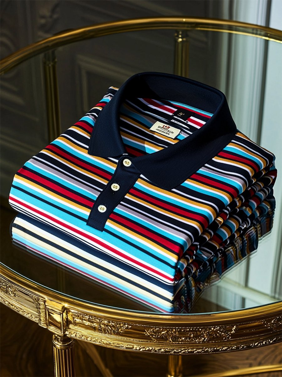 Men's Business Casual Striped Button Short Sleeve Polo Shirt