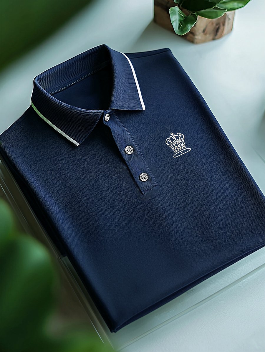 Men's Business Casual Cross Button Short Sleeve Polo Shirt