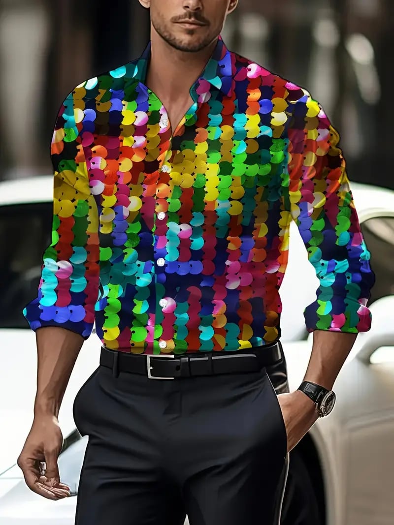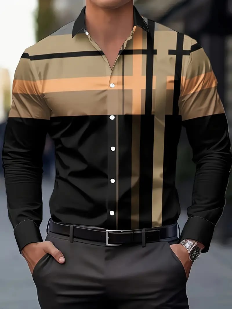 Men's Luxury Business Geometric Print Long-Sleeve Shirt