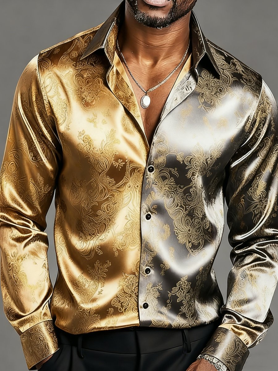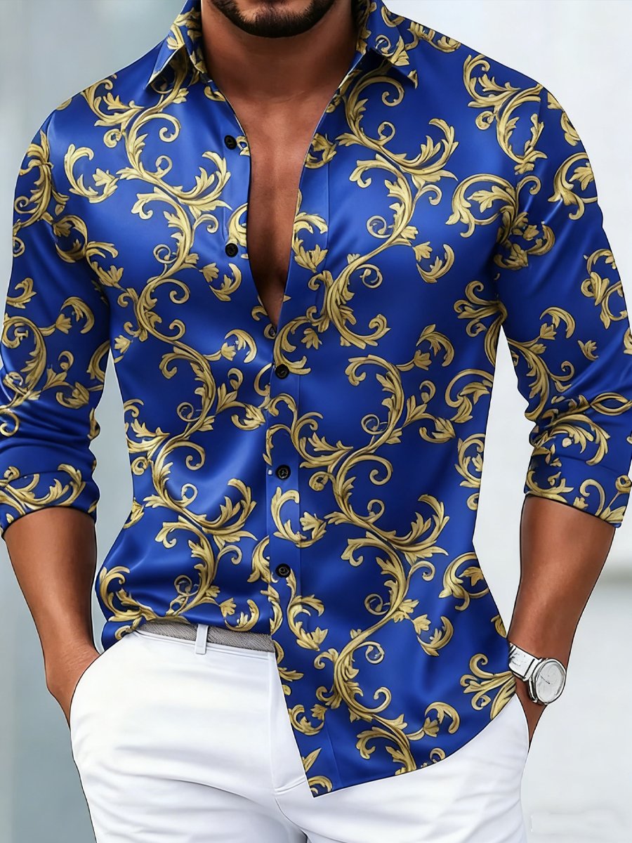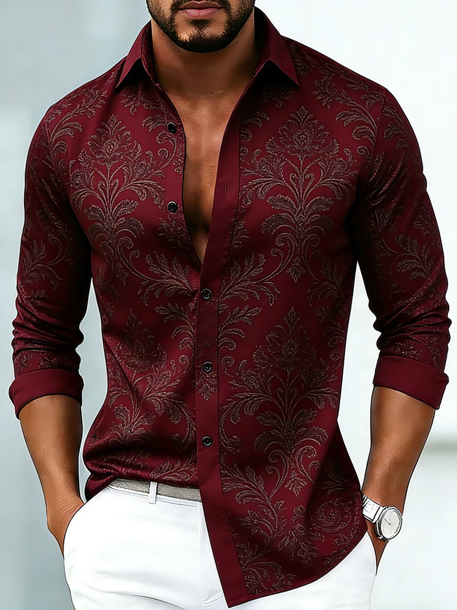 Men's Luxury Floral Print Baroque Formal Long-Sleeve Shirt