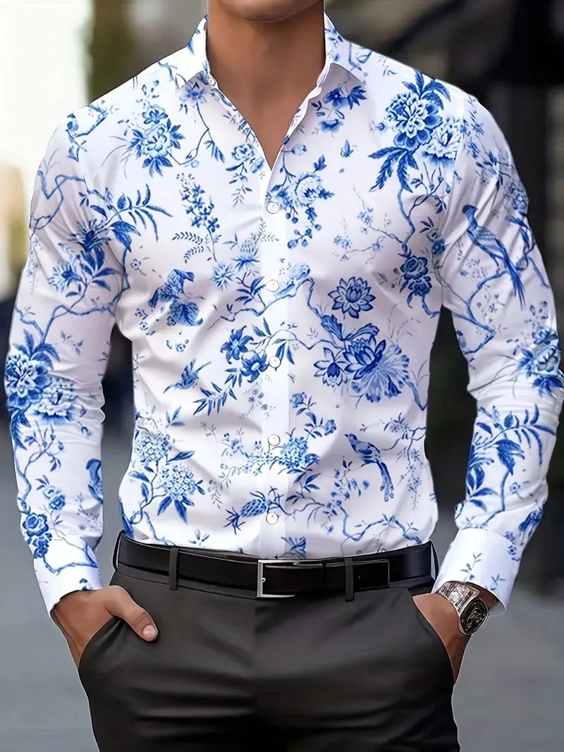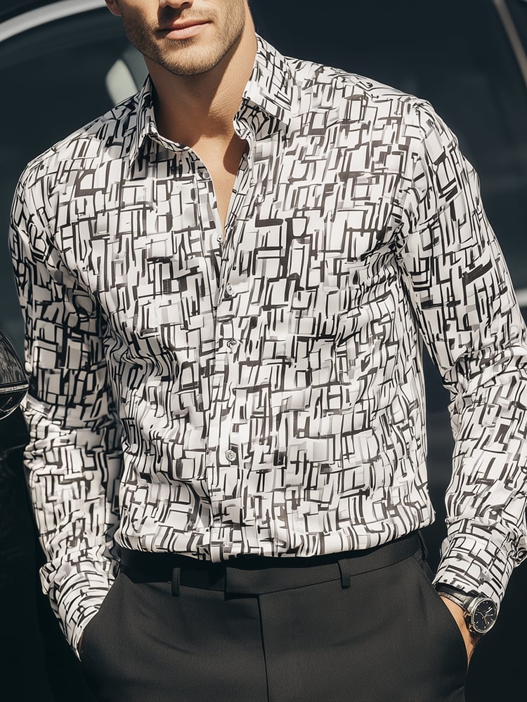 Men's Street Style Business Casual Printed Long Sleeve Shirt