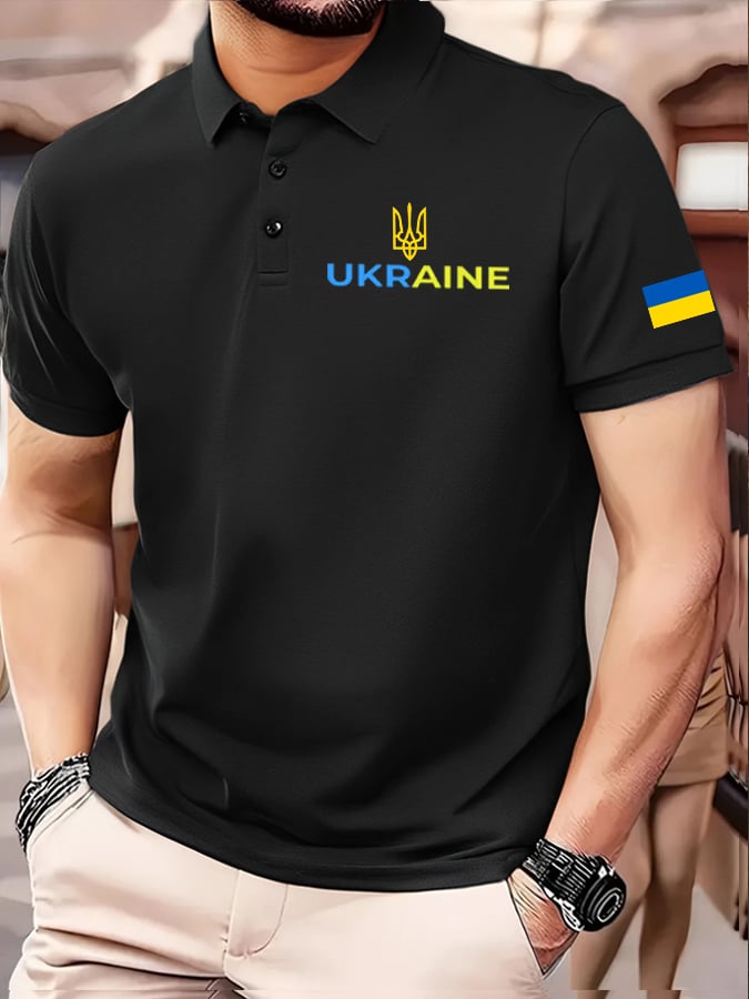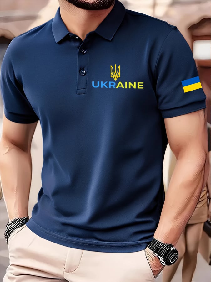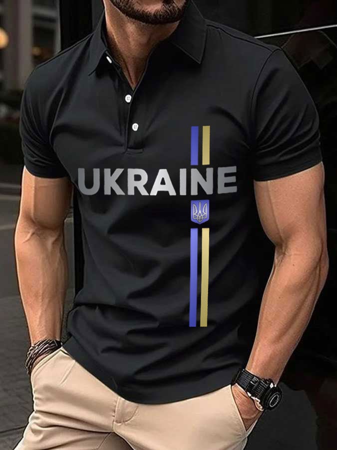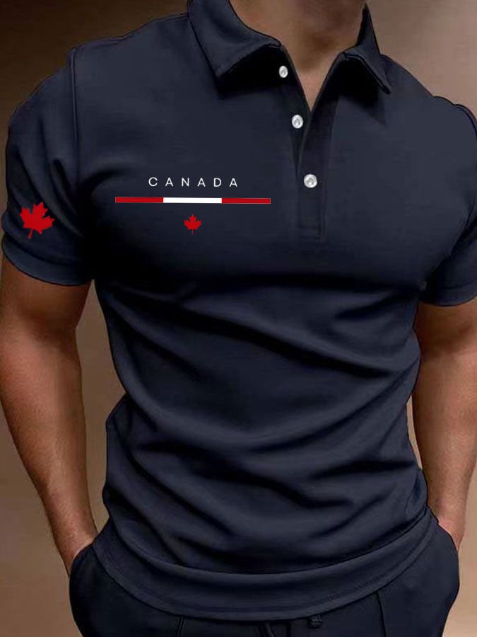 Men's Business Print Button-Down Short Sleeve Polo Shirt