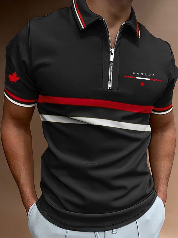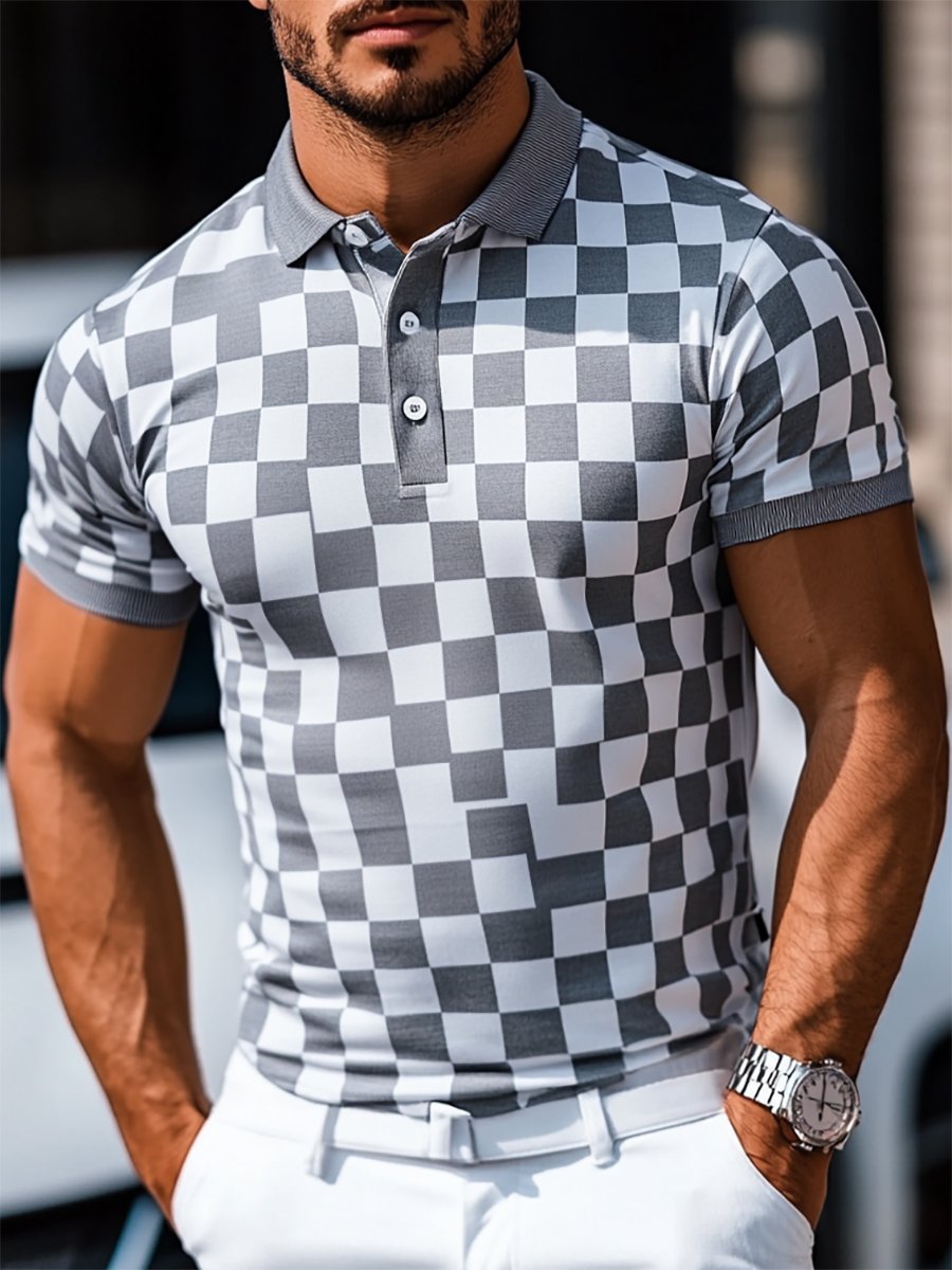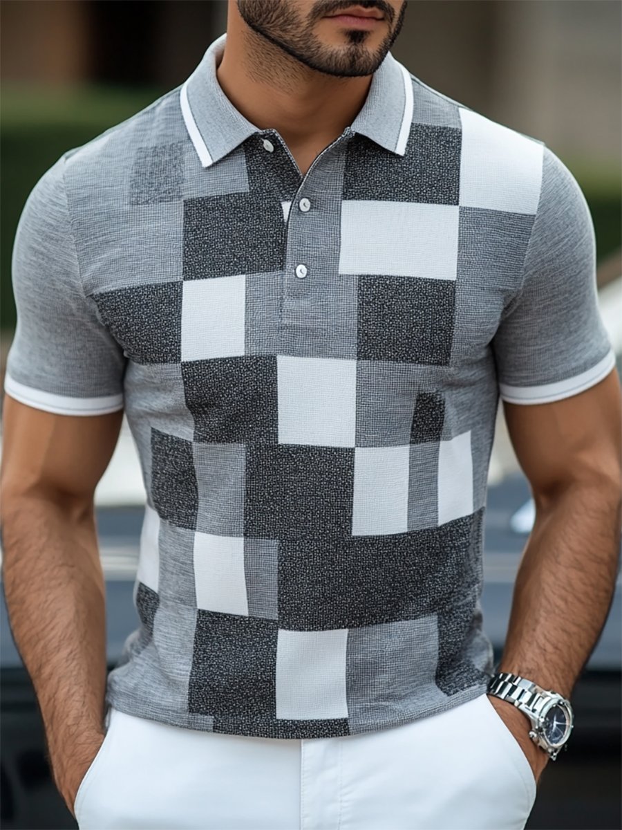 Men's Casual Business Geometric Button Short Sleeve Polo Shirt