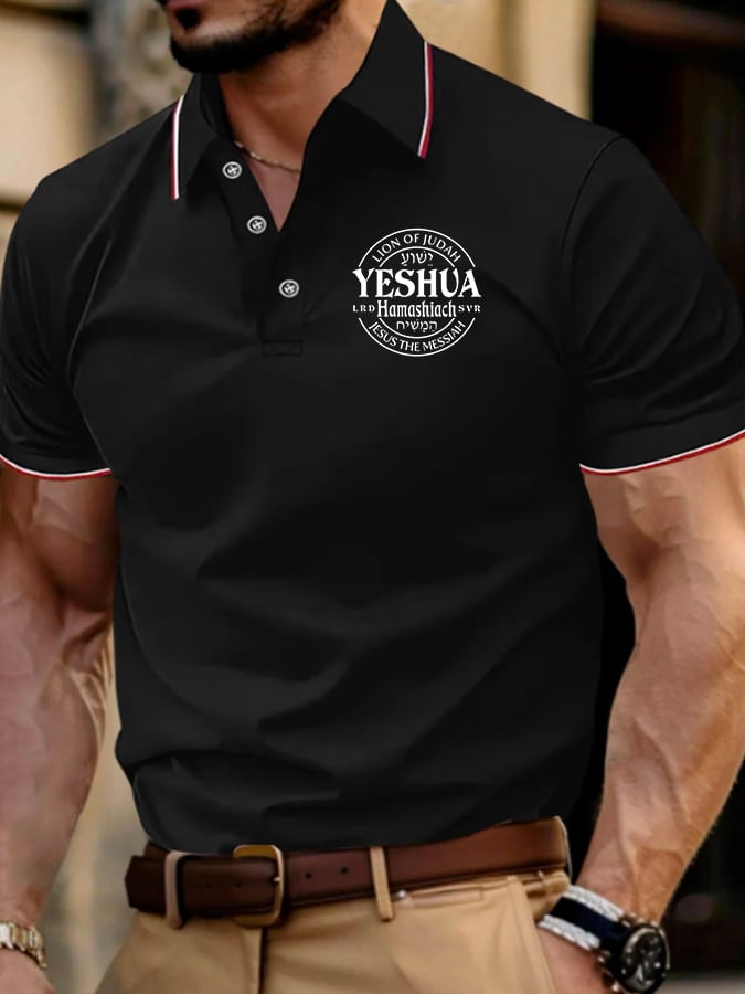 Men's Business Logo Button-Down Short Sleeve Polo Shirt