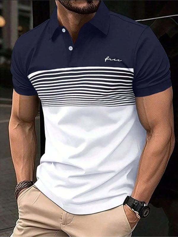 Men's Business Stripe Button-Down Short Sleeve Polo Shirt