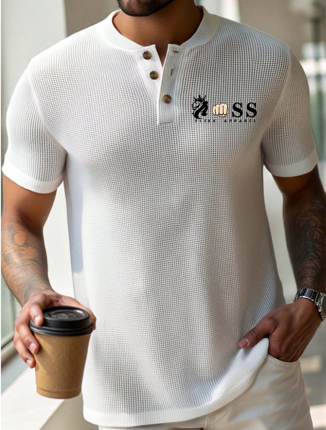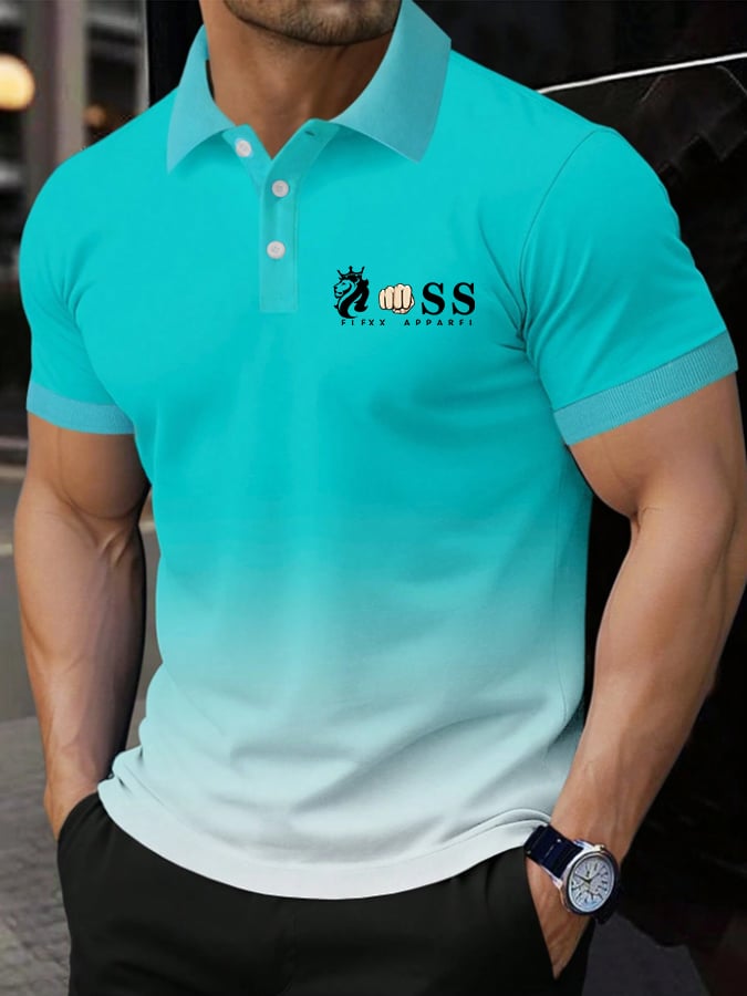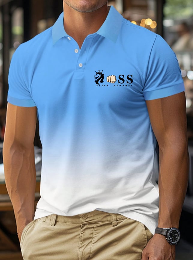 Men's Business Logo Button-Down Short Sleeve Polo Shirt