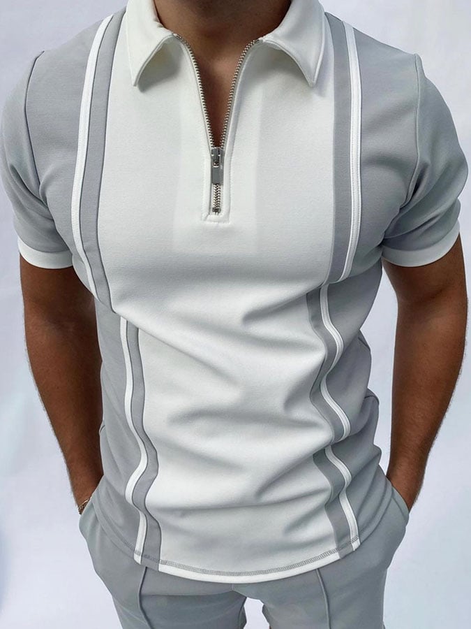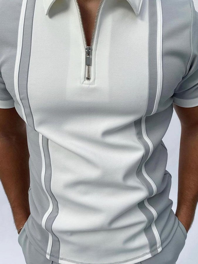 Men'S Casual Colorblock Zip-Up Polo Shirt
