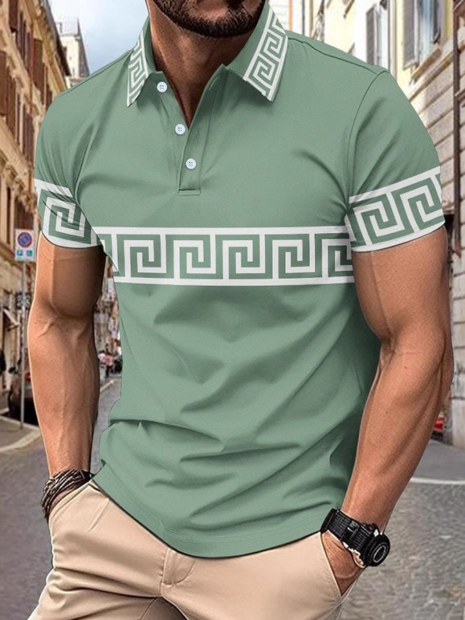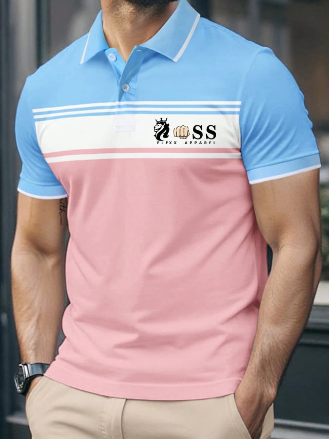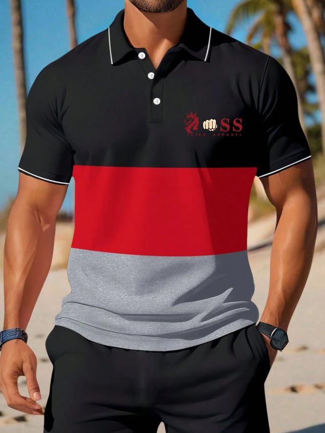 Men's Casual Fashion Contrast Color Hawaiian Polo Shirt