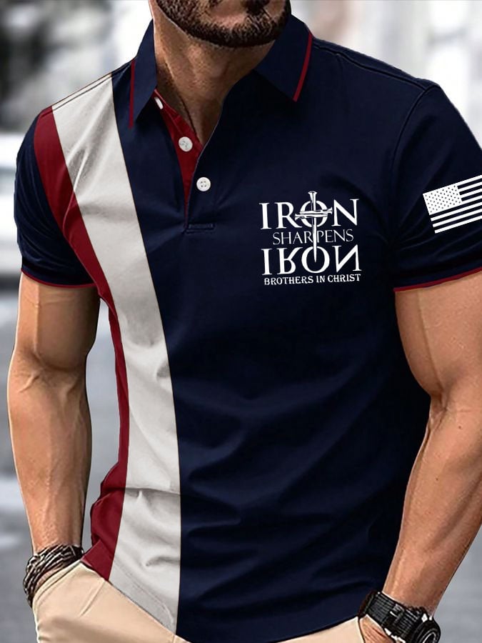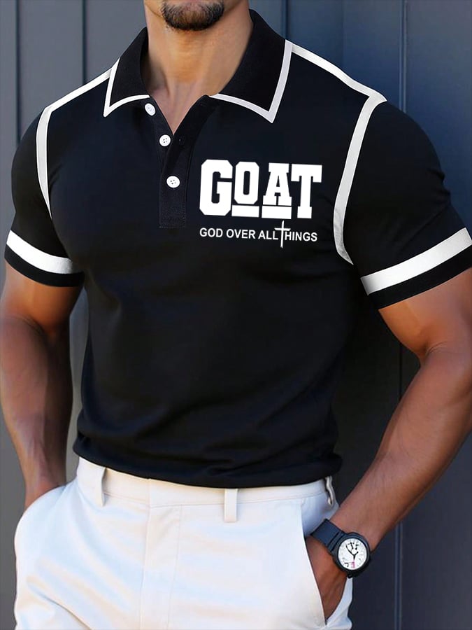 Men's Retro Faith “Goat God Over All Things” Casual Printed Polo Shirt