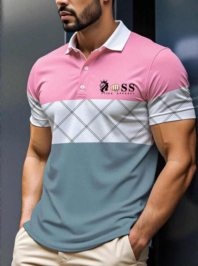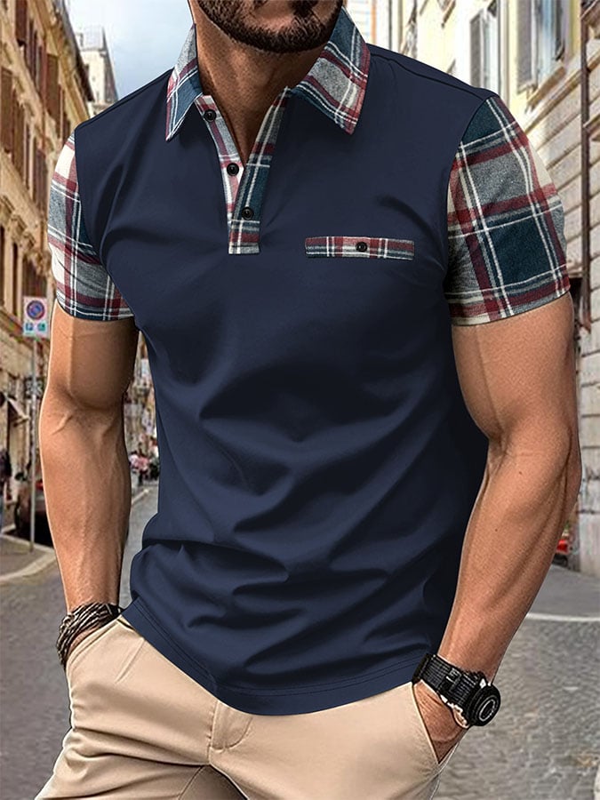Men's Classic Plaid Color Block Casual Business Fashion Polo Shirt