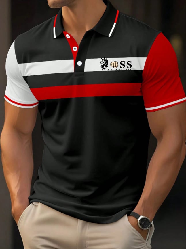 Men's Classic Color Block Casual Eagle Business Fashion Polo Shirt