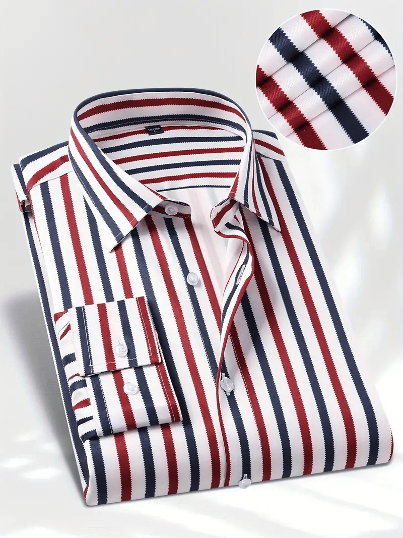 Men's Deluxe Business Striped Lapel Short Sleeve Shirt