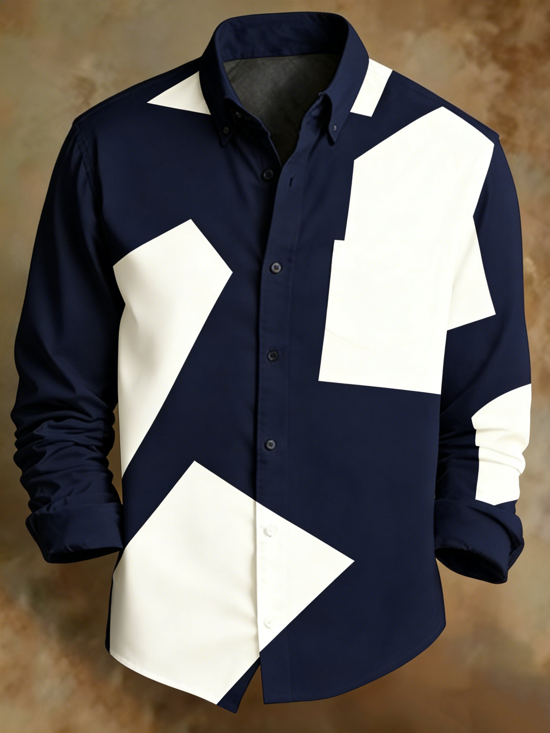 Men's Retro Geometric Lines Classic Pattern Print Shirt