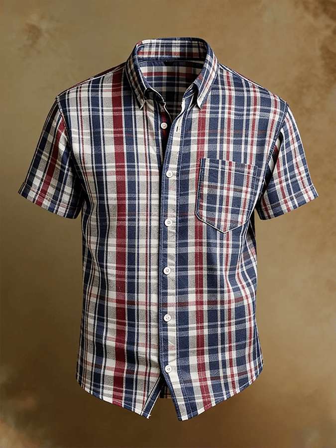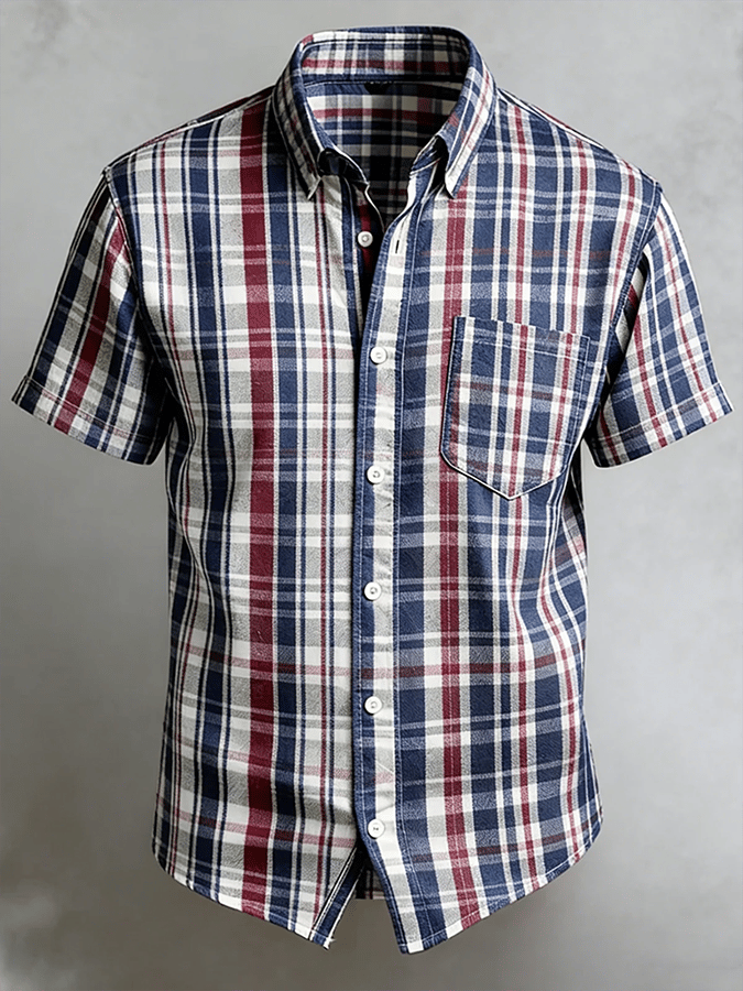 Men's Vintage Abstract Art Print Short-Sleeved Pocket Shirt