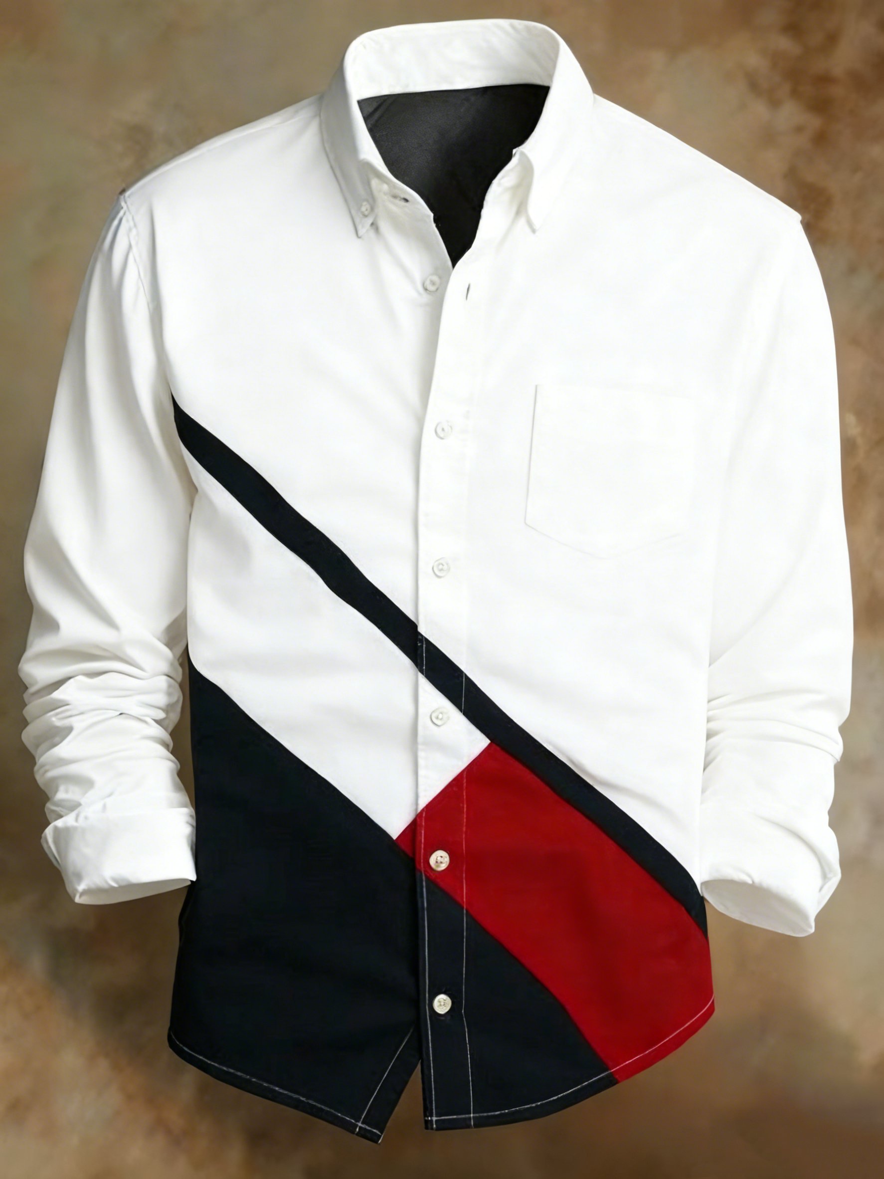 Men's Retro Geometric Lines Colorblock Pattern Print Shirt