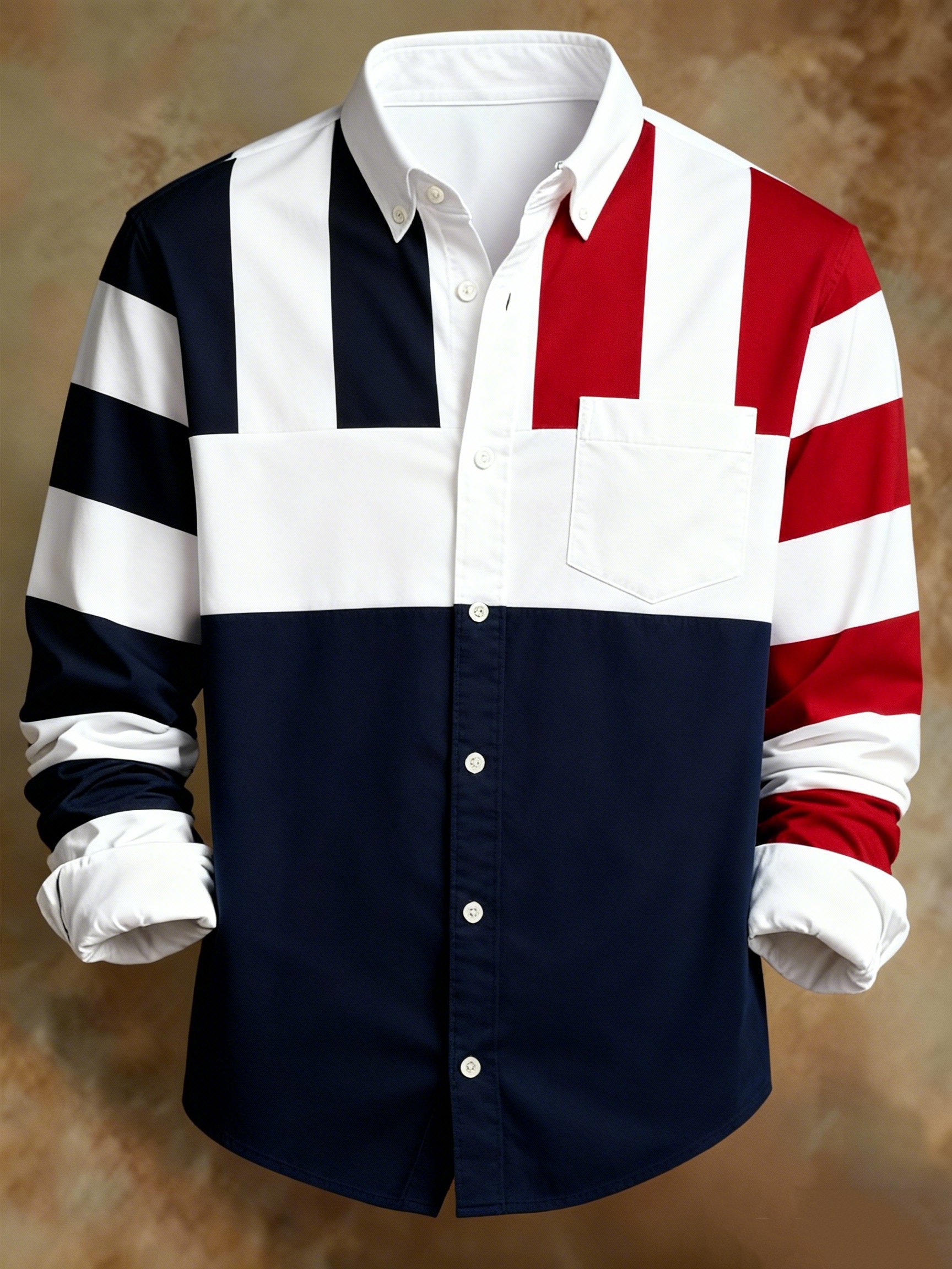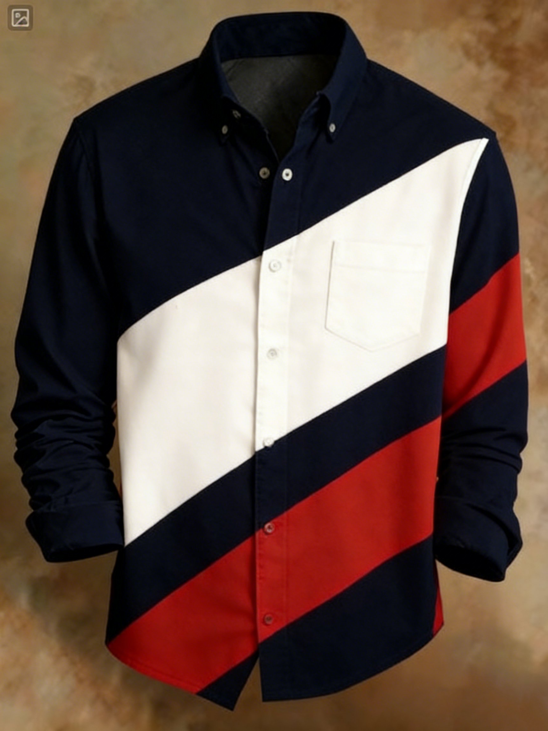 Men's Retro Colorblock Lines Pattern Print Shirt