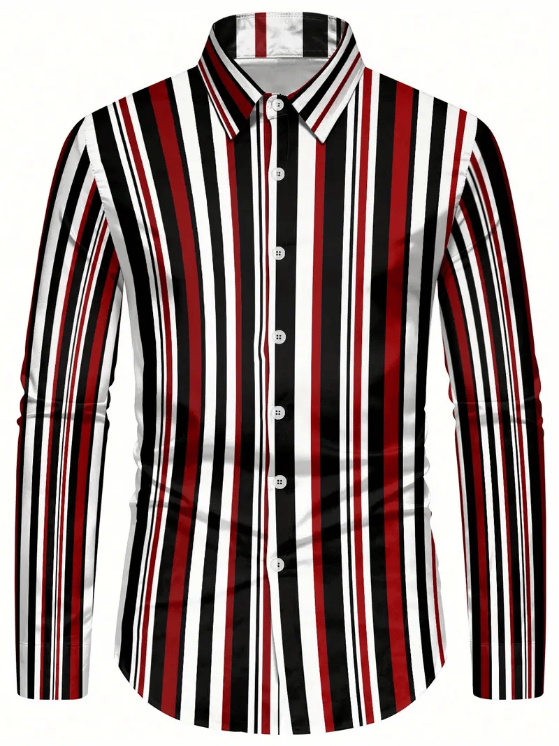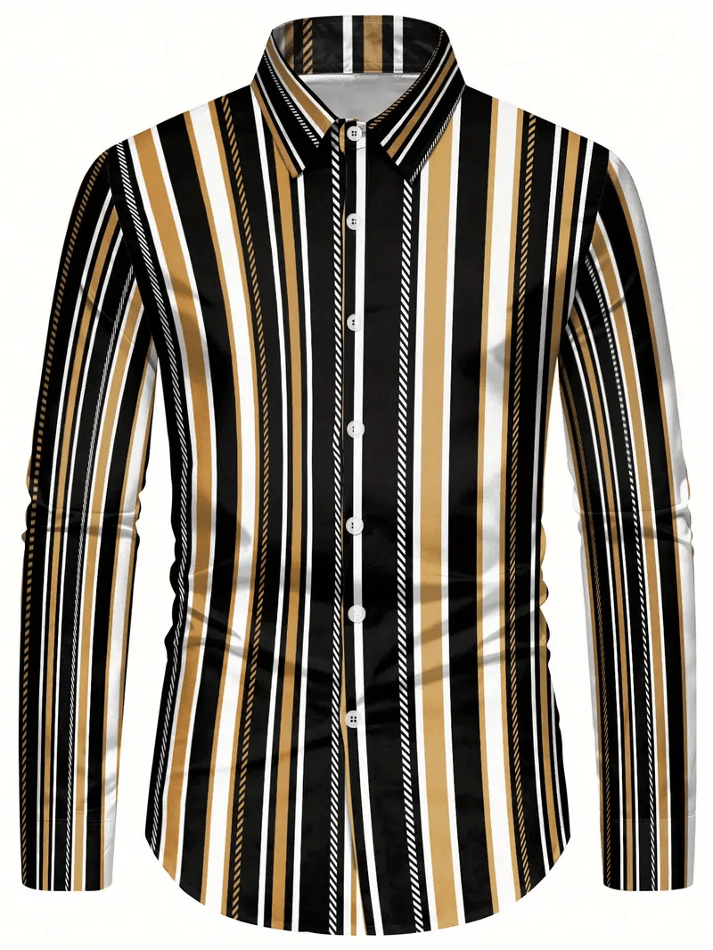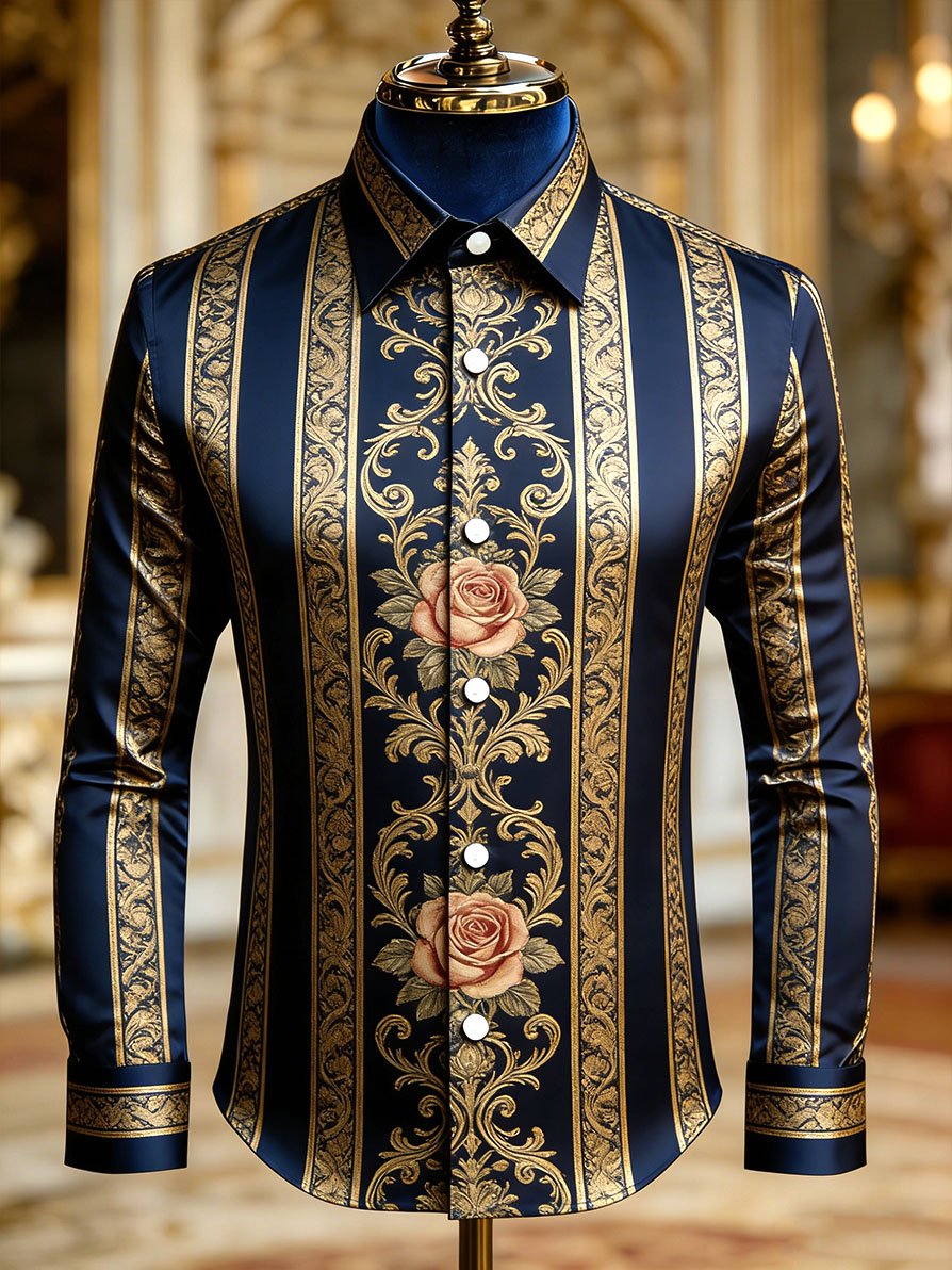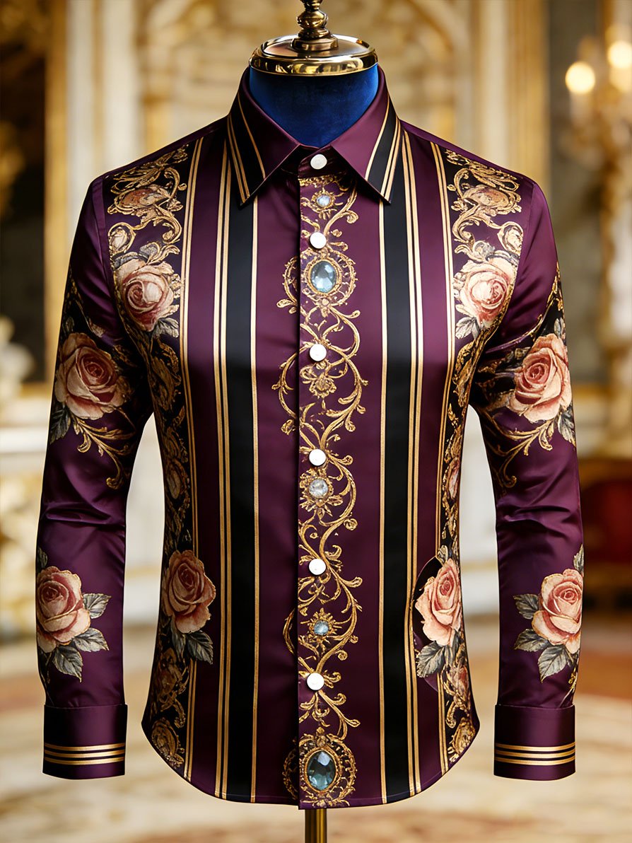 Men's Retro Business Casual Baroque Striped Long-Sleeved Shirt