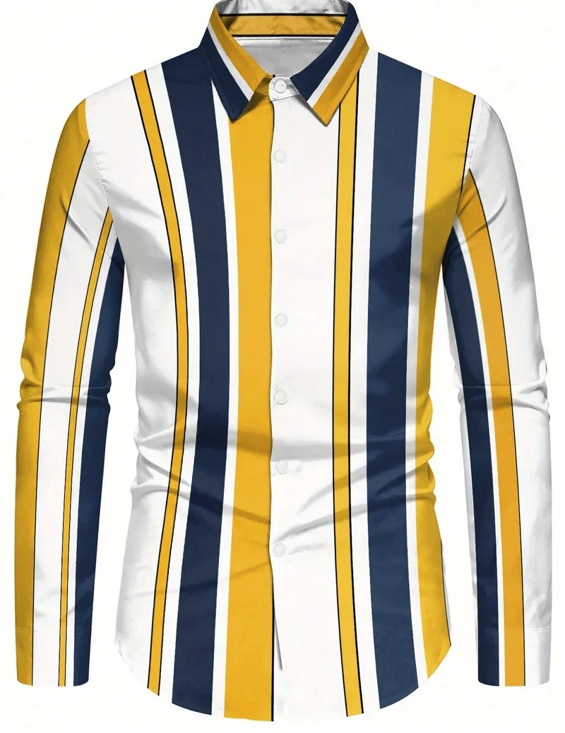 Men's Stripe Print Business Long Sleeve Shirt