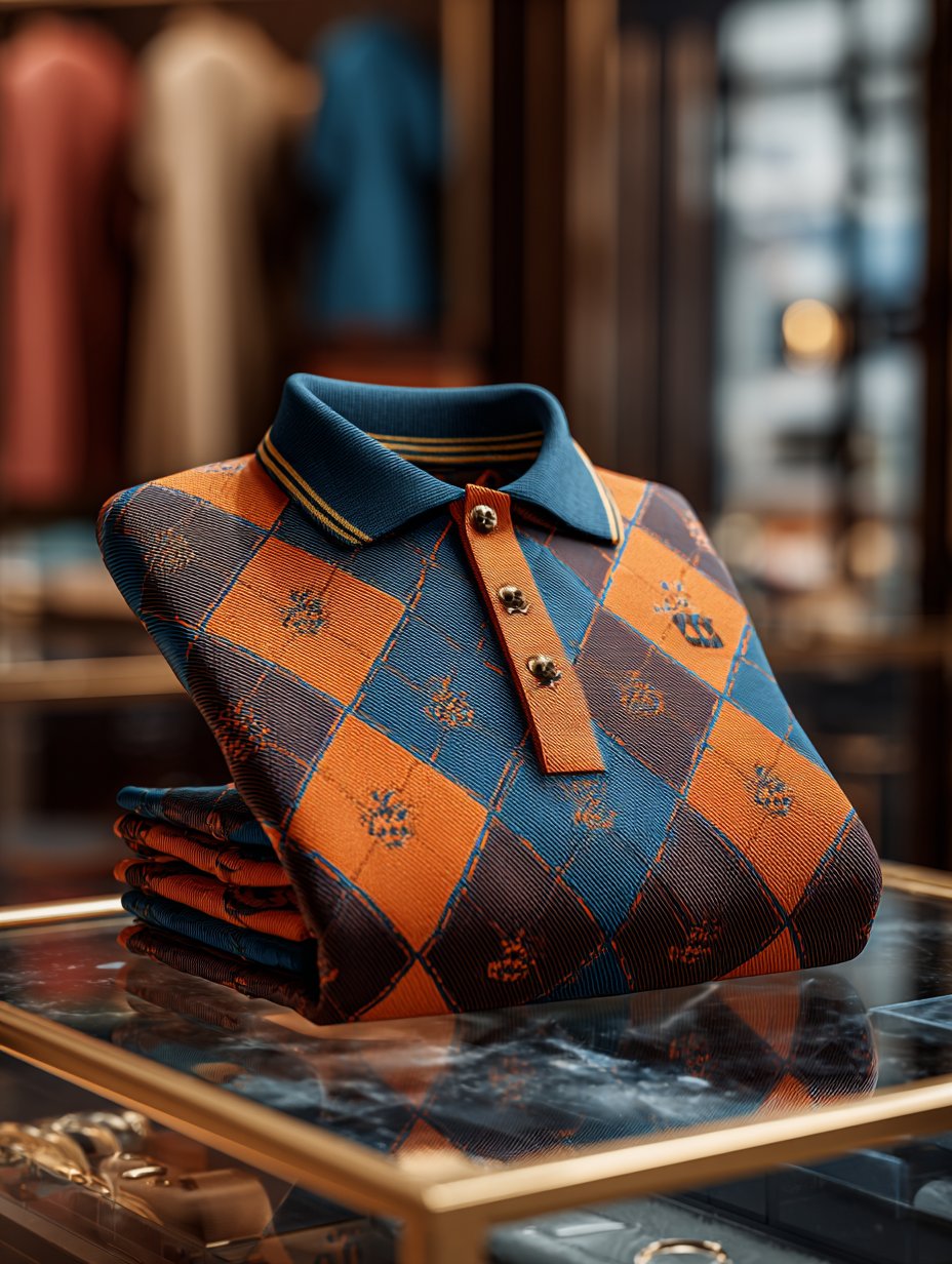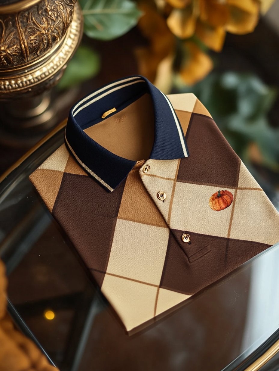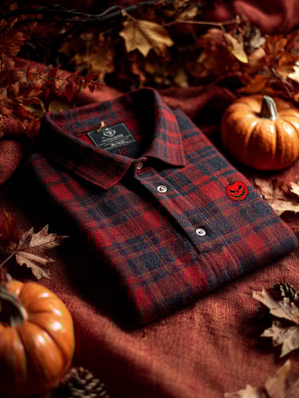 Men's Halloween Plaid Pumpkin Casual Print Polo Shirt