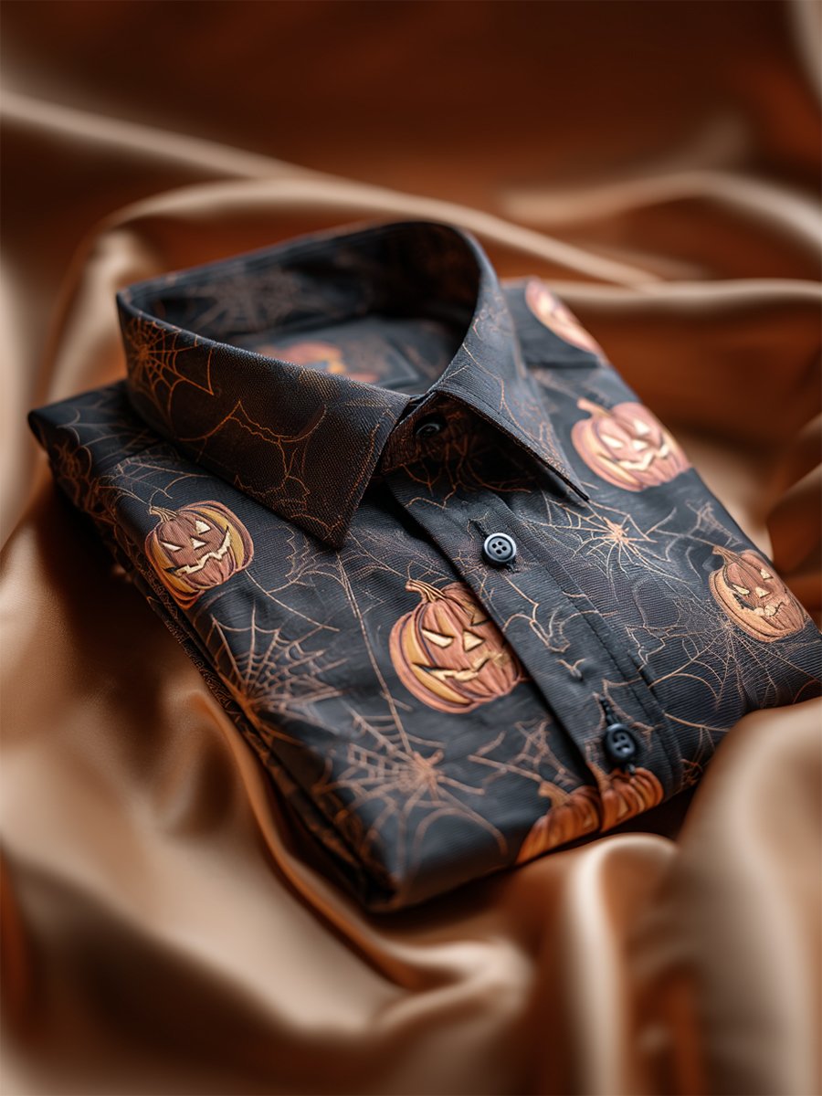 Men's Retro Casual Halloween Art Long Sleeve Shirt