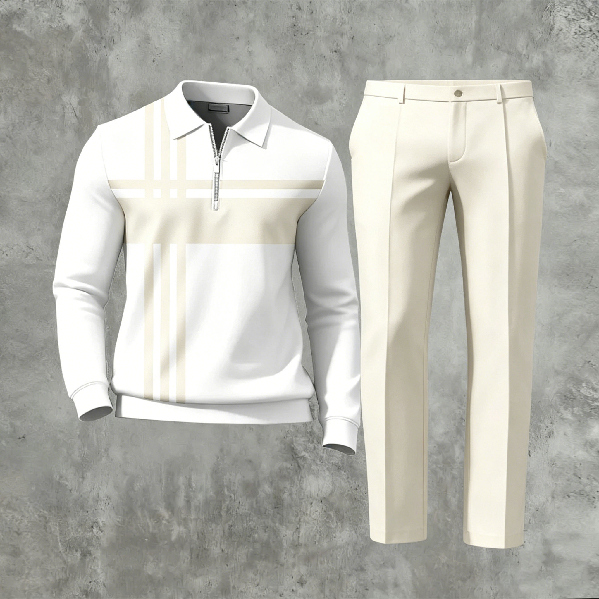 Men's Casual Off-White Geometric Printed Long-Sleeve And Pants Two-Piece Set